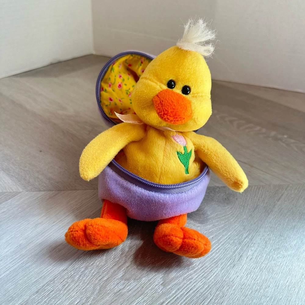 Vintage Plushland Easter Plush Stuffed Animal Purple Surprise Egg Duckling Chick Zipper So cute, great condition, see photos.