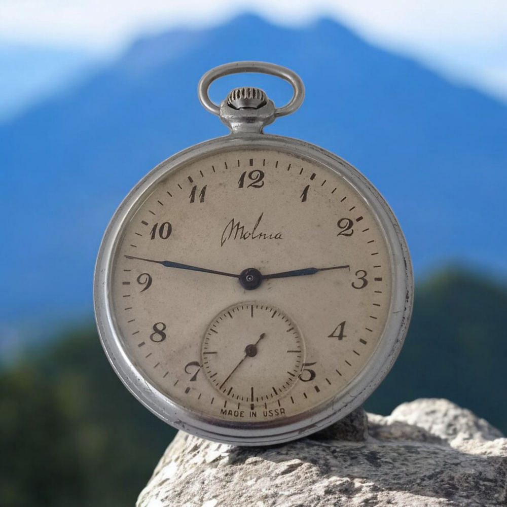 Up for sale is authentic vintage Molnija pocket watch. Manufactured in the USSR (Soviet Union), Molnija watches were known for their precise mechanical movements and durable craftsmanship . This vintage Molnija pocket watch from the Soviet era has been professionally serviced by a watchmaker and is in excellent working condition . This timepiece is perfect for collectors, watch enthusiasts, or as a unique gift. Features of men's pocket watch Molnija: Brand: Molnija (Molnia); Mechanical watch, 18 jewels; Caliber (movement) # 3602; Diameter of case - 50 mm / 2 inches ; Made in USSR ( Soviet Union ). Original USSR vintage pocket watch Molnija. Why Buy This Watch? - Professionally serviced by a watchmaker - runs accurately. - Historical Soviet-era timepiece - collectible and unique. - Perfect for vintage watch collectors, steampunk enthusiasts, or as a thoughtful gift. You can find other Soviet, USSR , Russian watches in my shop. I sell only original vintage watches in working condition. Free of customs duties for all US orders, taxes are paid by me. All US orders are shipped DDP (Delivered Duty Paid), no customs fees for buyers.