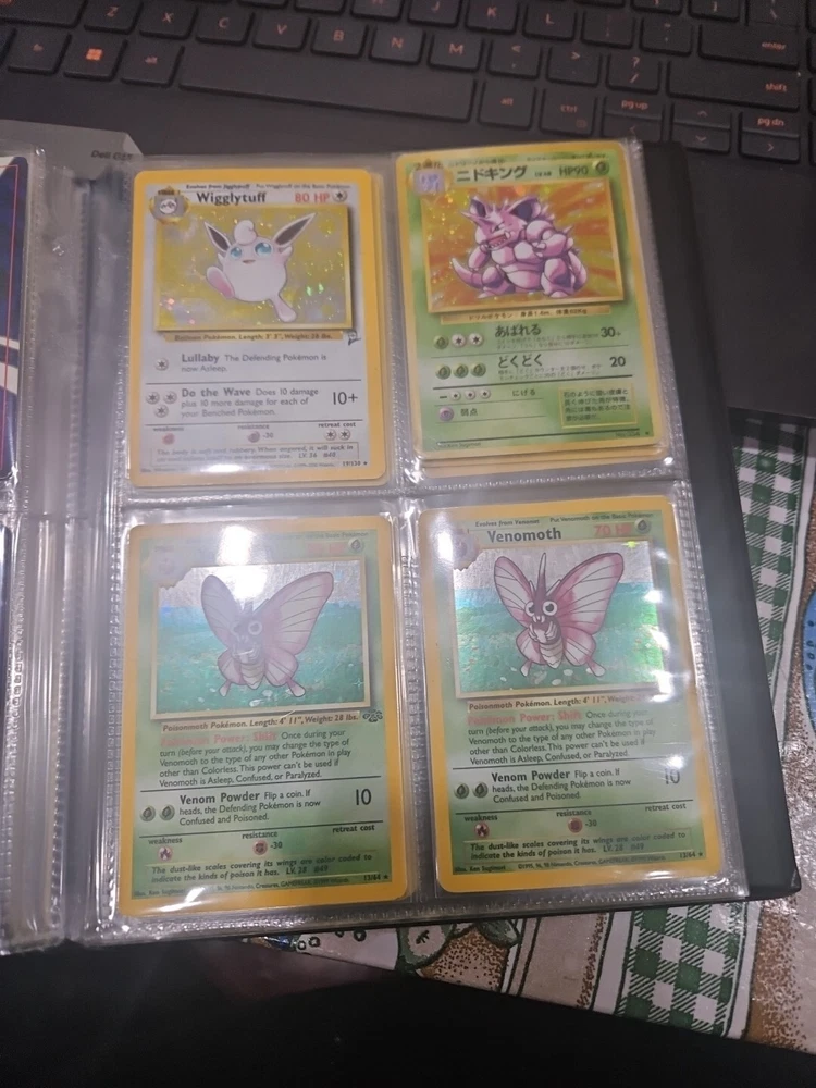 Vintage Pokemon Binder featuring a collection, from various sets including Base Set, Team Rocket, and Gym Heroes. The cards showcase a range of attributes such as Water, Wind, Fighting, Darkness, and more. The binder includes holographic cards (Holo's) featuring popular characters like Mewtwo, Kingdra, Gyarados, and Venusaur. This collector's item is from 1999 and manufactured by Wizards of the Coast, making it a nostalgic addition to any Pokemon TCG collection. Cards condition ranges some are in light played to heavily played. The Charizard is probably one of the better condition same with Dark Blastoise. I will also throw in a suprise psa graded card. On Feb-17-25 at 19:47:44 PST, seller added the following information: Vintage Pokemon Binder featuring a collection, from various sets including Base Set, Team Rocket, and Gym Heroes. The cards showcase a range of attributes such as Water, Wind, Fighting, Darkness, and more. The binder includes holographic cards (Holo's) featuring popular characters like Mewtwo, Kingdra, Gyarados, and Venusaur. This collector's item is from 1999 and manufactured by Wizards of the Coast, making it a nostalgic addition to any Pokemon TCG collection. Cards condition ranges some are in LIGHT PLAYED to HEAVILY PLAYED. The Charizard is probably one of the better condition same with Dark Blastoise.