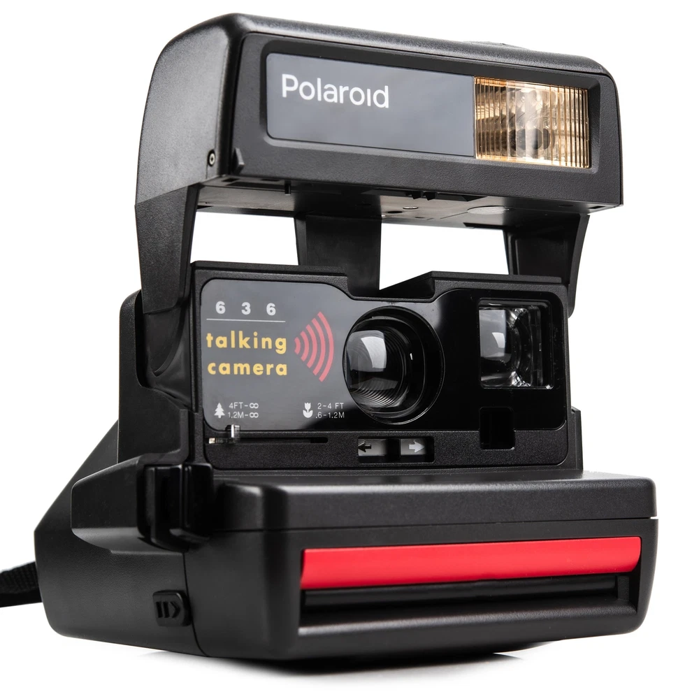 The Polaroid 636 Talking Camera is an instant camera. It is a very unusual Polaroid 600 camera. When you press the shutter button, it can play sounds and music. For this purpose, the camera has a built-in speaker. It also has a microphone that you can use to record your own sounds. You can choose between three of your own sounds and three predefined sounds. The other functions are comparable to the Polaroid 636 Closeup. It was introduced in the mid-1990s. The body of the camera is made of plastic. Brand: Polaroid Name: Polaroid 636 Talking Camera Type: Instant camera Type of Film: Typ 600 Focal length: 116 mm Maximum aperture: f/11 Focus: Fixed Shutter speeds: 1/200 s to 1/4 s Flash / Flash connection: Built-in flash