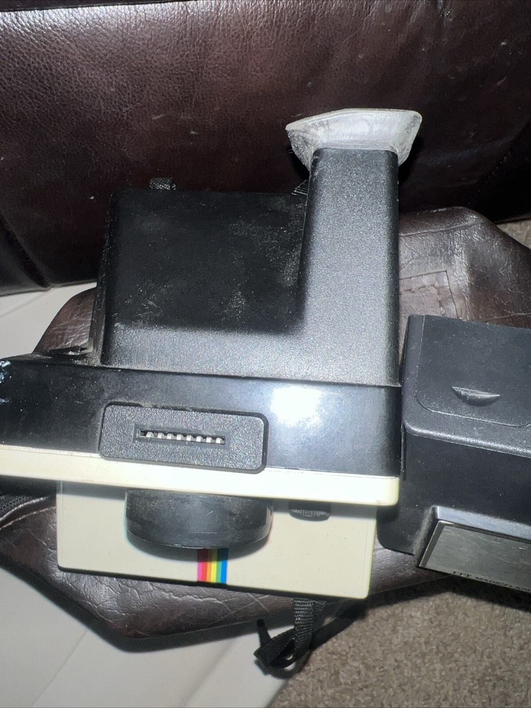Vintage Polaroid SX-70 OneStep White Rainbow Stripe Camera Case with Flash