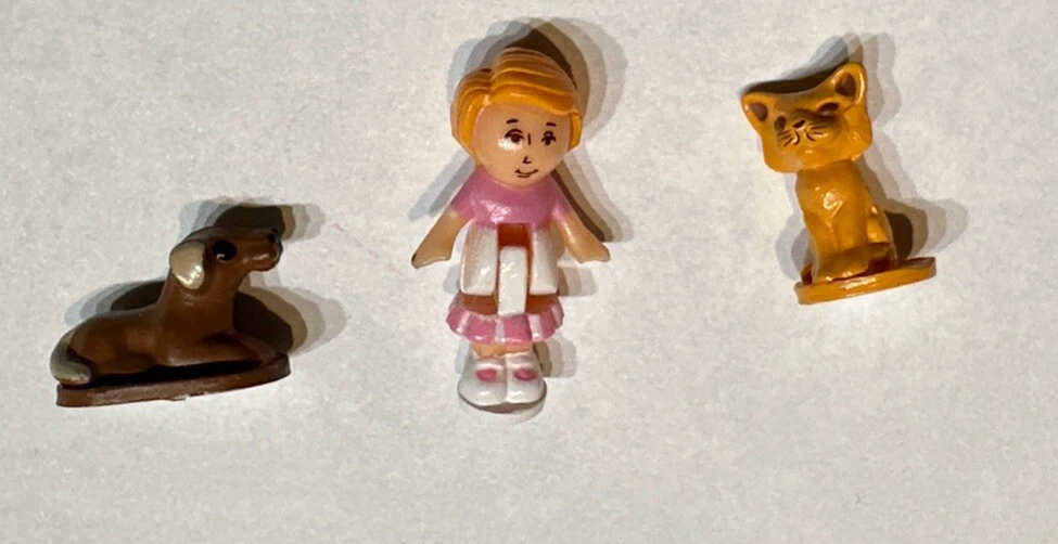 COMPLETE In very good condition see photos Relive cherished memories with the Vintage Polly Pocket Buttons Animal Hospital Vet Playset, a treasured find for collectors and fans of the iconic Bluebird brand. This complete set from 1989 comes in a compact size, featuring the beloved character Polly Pocket and her animal friends. The playset showcases the classic light complexion and straight orange hair of the 1-inch doll, with brown eyes that reflect her vibrant personality. Crafted from durable plastic, this doll playset is a snapshot of the 1980s nostalgia and represents a piece of Polly Pocket history. It includes all the original accessories attached in a circular compact, allowing you to recreate your favorite scenes or imagine new adventures. This original, non-antique yet vintage piece, without its original packaging, brings the magic of Polly Pocket's world right into your home.