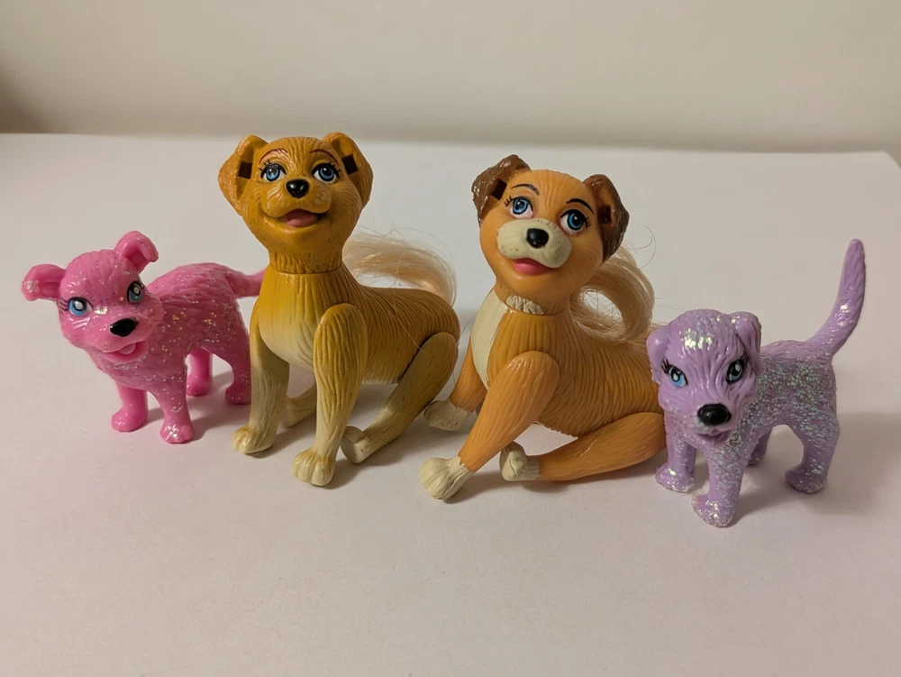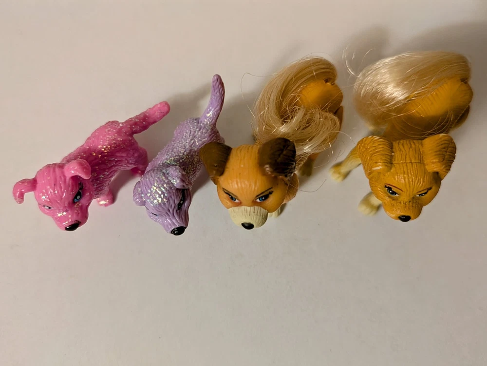 These two fashionable pups and two sparkly pups are eager to be adopted! Please see photos for their current condition. NOTE: All items come from a non-smoking, pet-friendly home. I keep all items in an area separate from my pets, but a pet hair may slip into a package every now and then. If this is a concern for you, please find another seller.