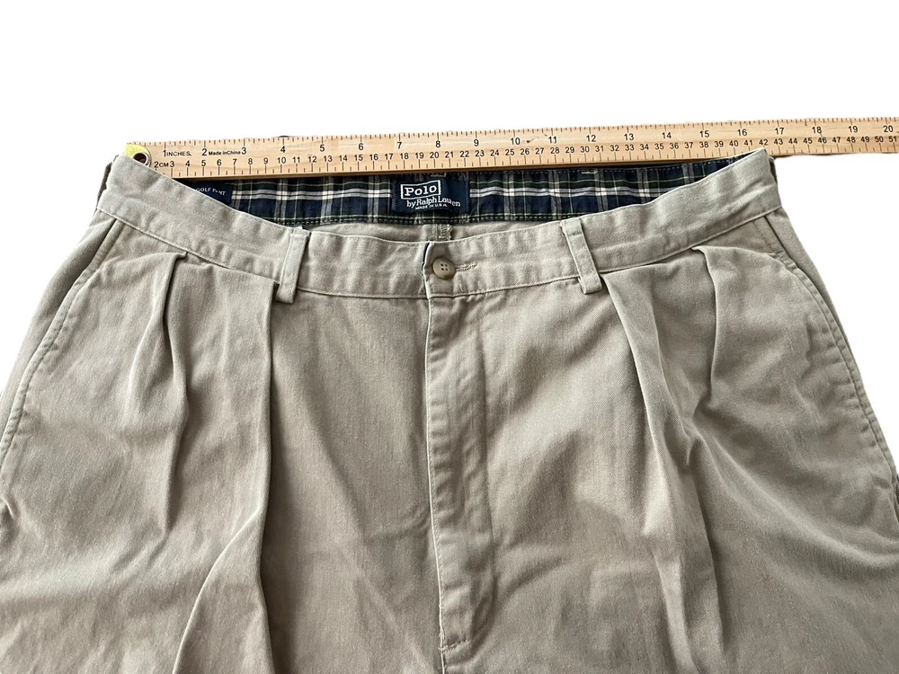 Vintage Polo Ralph Lauren Golf Pants 34x31 Beige Khaki Cotton Pleated Chino USA