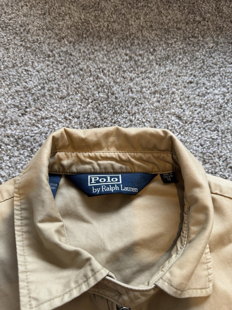 Features:Full Zip, LightweightColor:BeigeType:JacketVintage:YesStyle:WindbreakerOccasion:CasualSize Type:RegularBrand:Polo Ralph LaurenOuter Shell Material:CottonPattern:SolidDepartment:MenSize:MModel:H05Closure:ZipAccents:EmbroideredCountry of Origin:Thailand