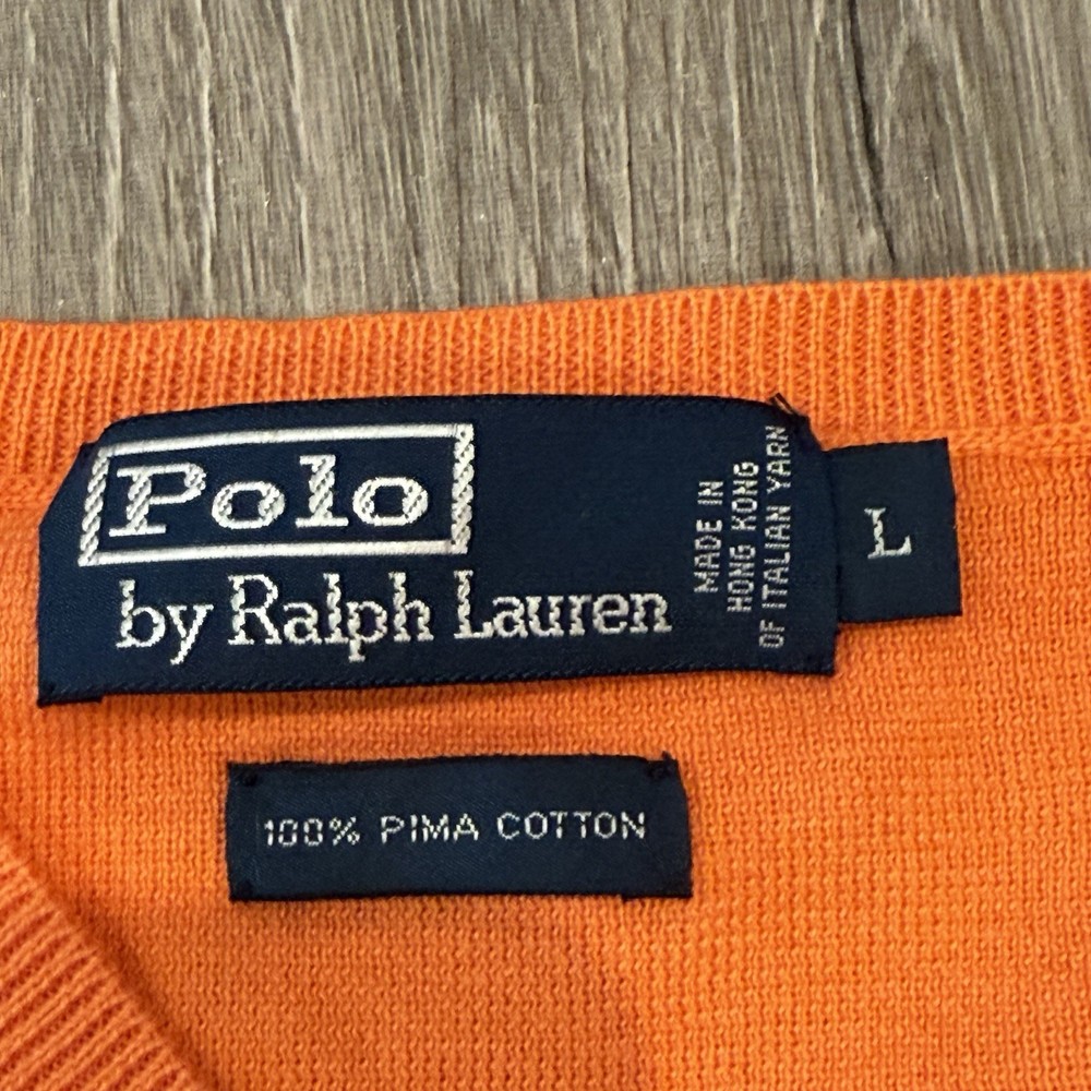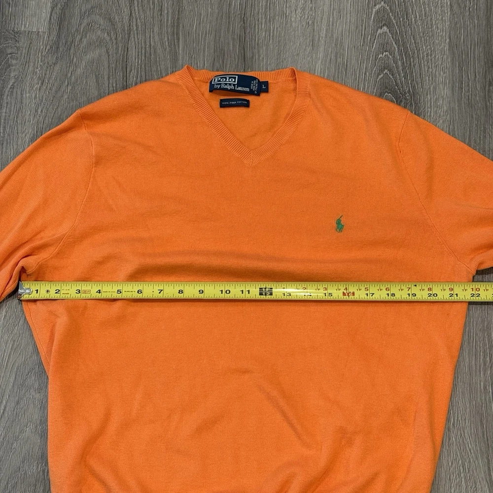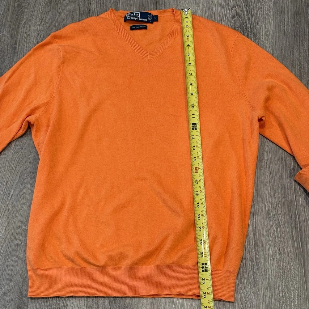 Polo Ralph Lauren V Neck Sweater Men’s size large Orange color with a green pony Very good used condition. See photos for more details and measurements Fast and secure shipping daily