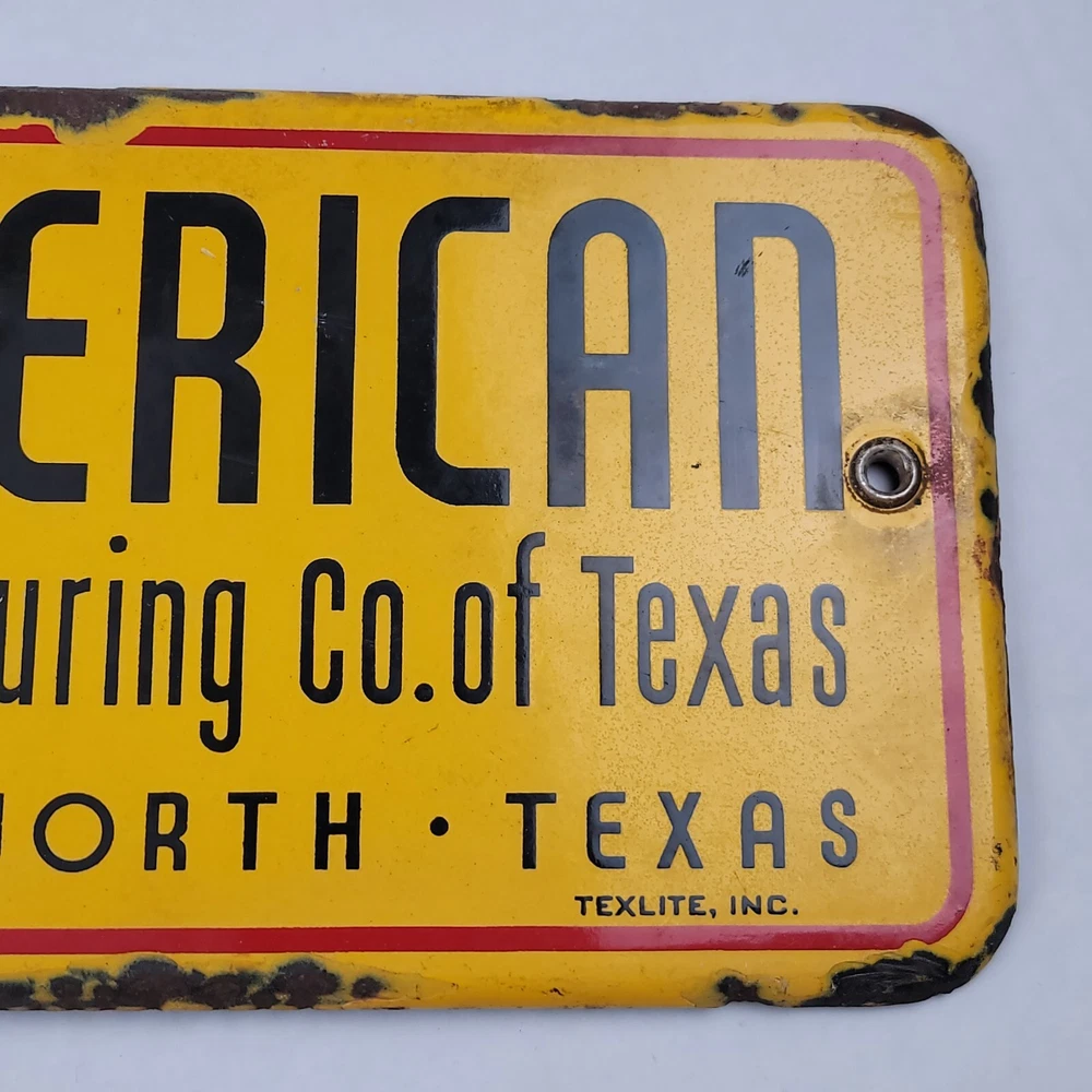 Vintage Porcelain AMCOT Gas & Oil Sign American Manufacturing Company Of Texas 16.85" Tall X 6.5" Wide See Pictures For Exact Condition