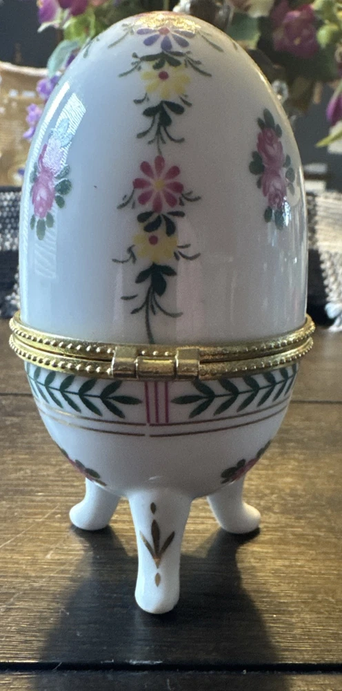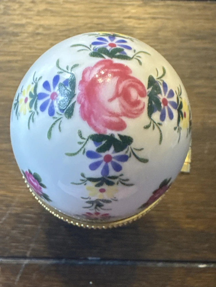 Department: Girls, Boys, Teens, Adults Subject: Egg Engraved: No Material: Porcelain Closure Type: Snap Type: Trinket Box Color: Multicolor Featured Refinements: Vintage Trinket Box Character Family: Floral Style: Victorian Room: Any Room Suitable For: Furniture Item Width: 2 Inches Care Instructions: Clean with Damp Cloth Brand: Unbranded Shape: Oval UPC: Does not apply Number in Pack: 1 Item Height: 4 Inches gtin13: Does not apply Customized: No Original/Reproduction: Original Packaging: Unboxed Features: Unboxed Pattern: Floral Finish: Glossy Size: Small Item Length: 2 Inches Country/Region of Manufacture: China Occasion: All Occasions Time Period Manufactured: 1980-1989 Era: Late 20th Century (1970-1999) Theme: Art, Novelty, Romantic Character: Trinket