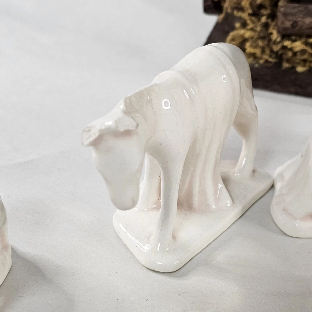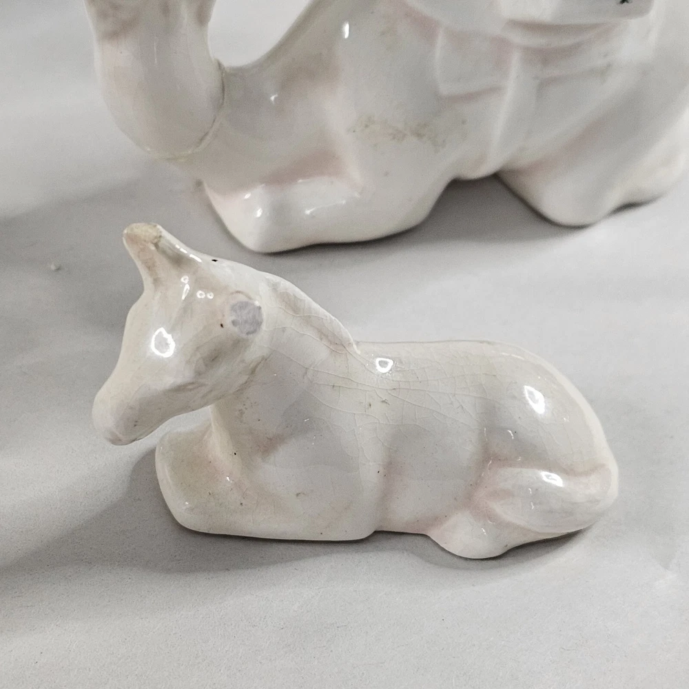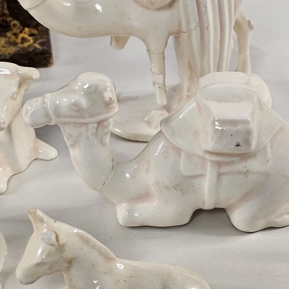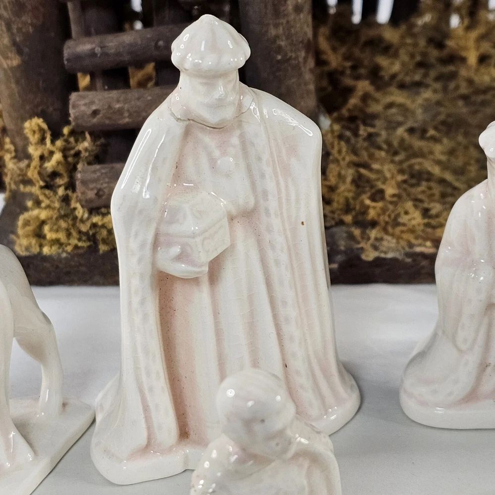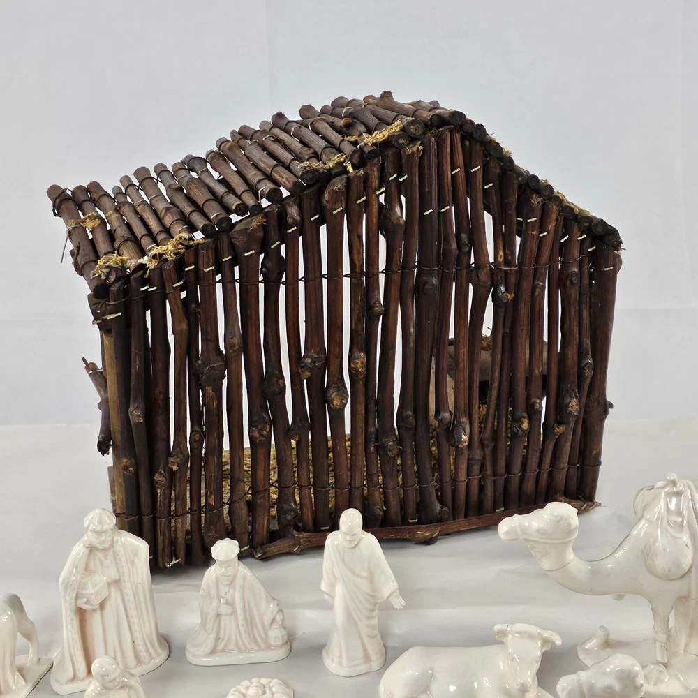 Vintage Porcelain Nativity Figurines Set Of 15 Wood Stable. Some Pieces Have Had To Be Repaired/Glued, And Missing Some Pieces. Please Check All Pictures Closely For A More Detailed Visual Description Of Ware And Condition. Ships Out Free Within One Business Day.