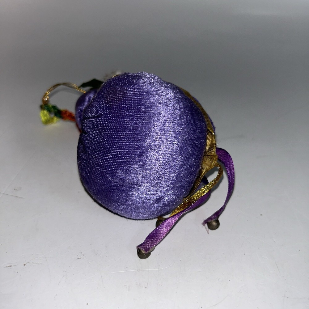 Vintage Porcelain Santa Face Ornament with Velvet Ball Purple Lace Ribbon Bells