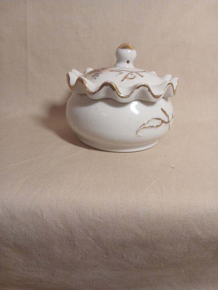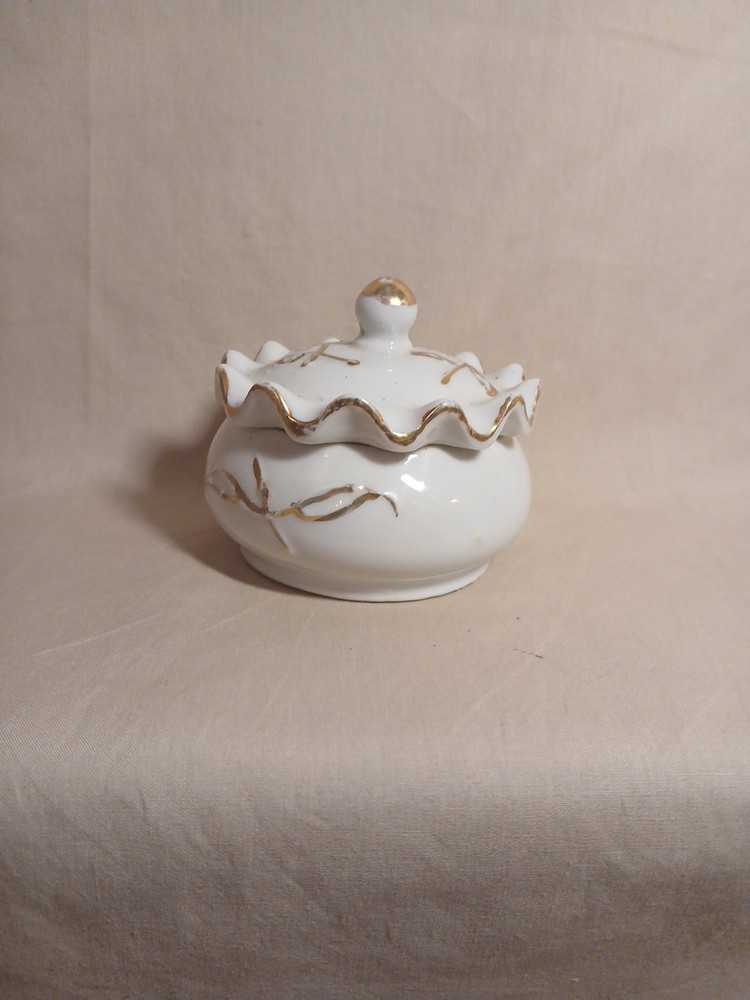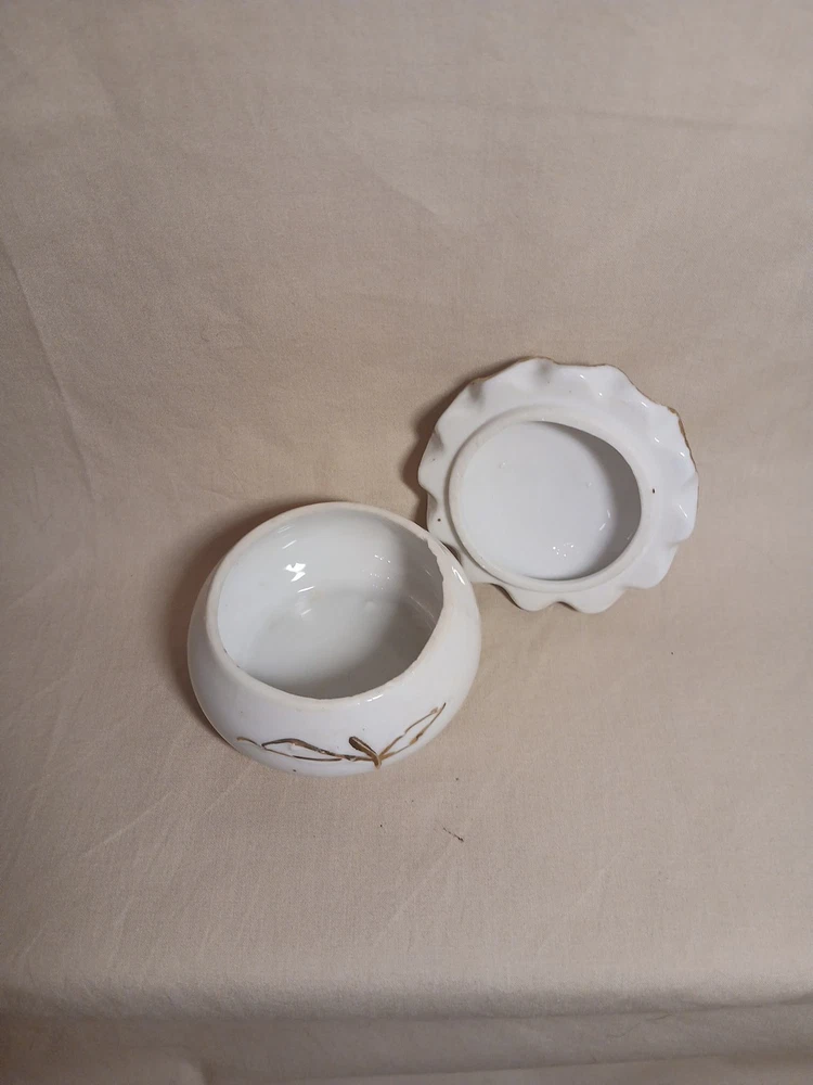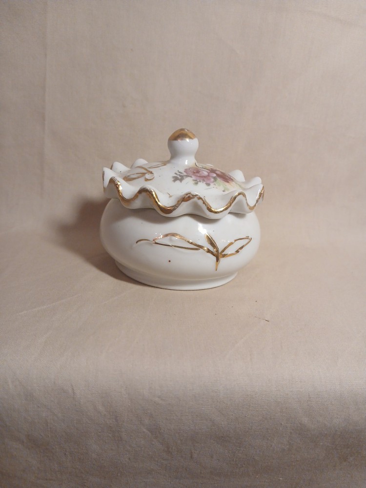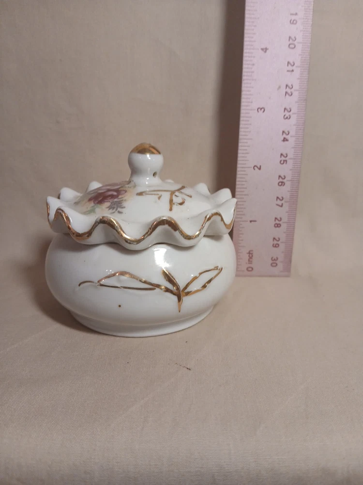 This vintage porcelain trinket jewelry box with a lid is a small round box suitable for furniture decor. It features a multicolor floral pattern and is made of porcelain, with a theme of art and romance. Perfect for any room, this original piece from the late 20th century is part of the Keepsake Boxes collection and comes boxed for gifting or storage. Ideal for adults who appreciate unique and nostalgic decor items, this jewelry box with a weight of 2 lb is a charming addition to any home.