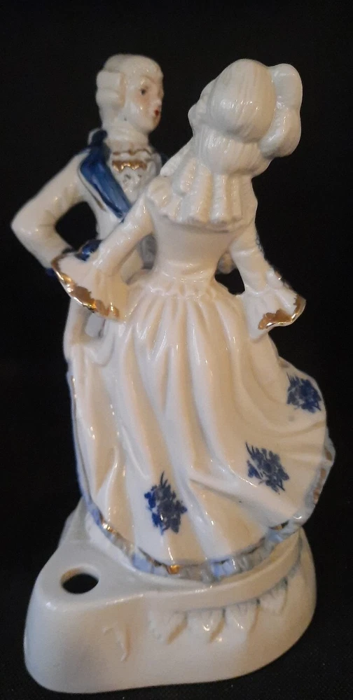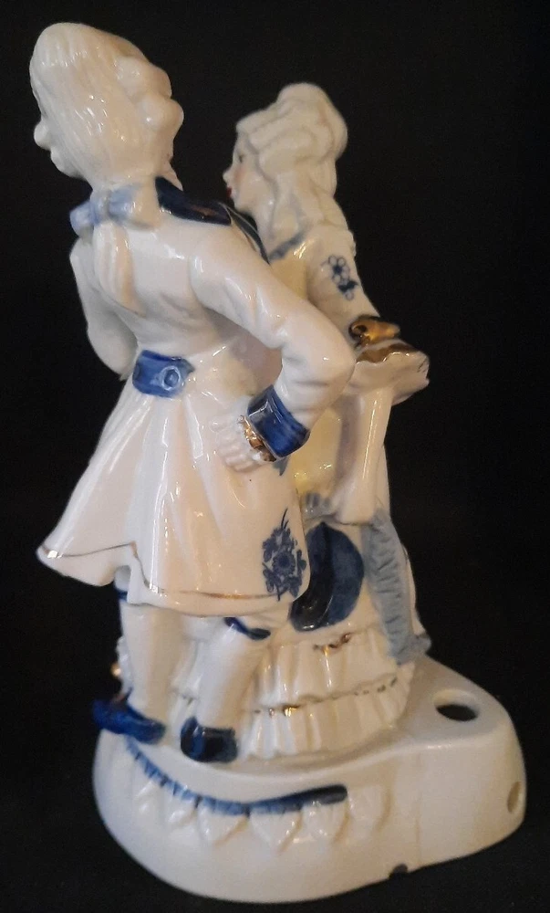 This beautiful vintage lamp base has been converted into a large figurine, depicting a Victorian couple in exquisite detail. Made of painted porcelain, this medium-sized piece stands at 10 inches tall. Its stunning design will add a touch of history and romance to any room, making it a perfect addition for collectors of historical figures and period-style decor. This is a must-have for anyone who appreciates the beauty of vintage porcelain and the elegance of Victorian style. This is beautiful the way it is or could be used for a lamp restoration project.
