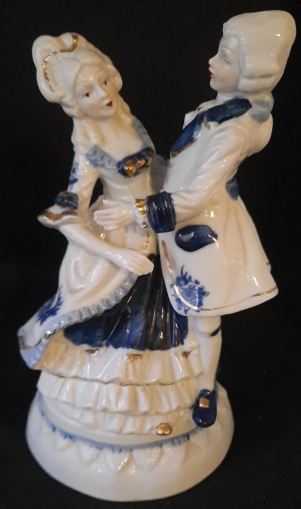 Vintage Porcelain Victorian Couple Lamp base Converted Into Large Figurine