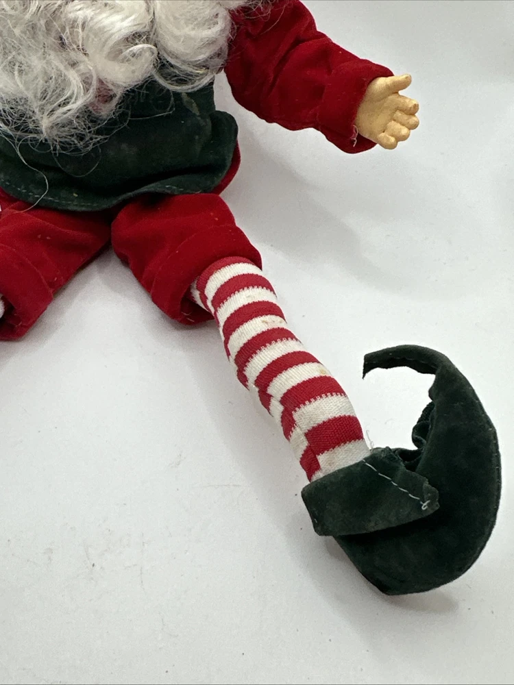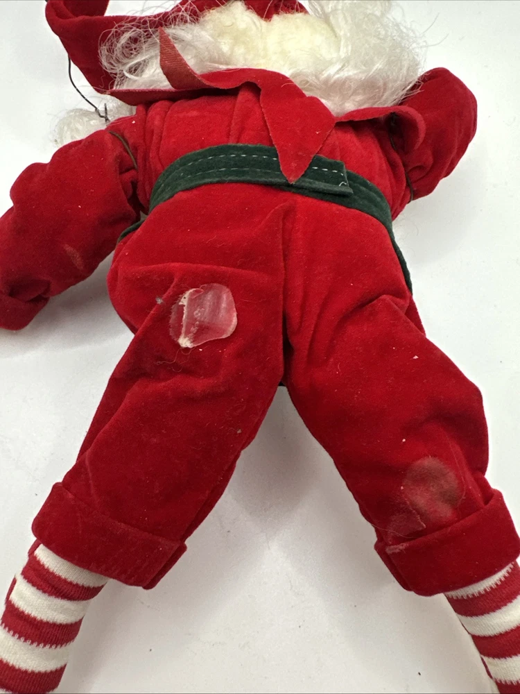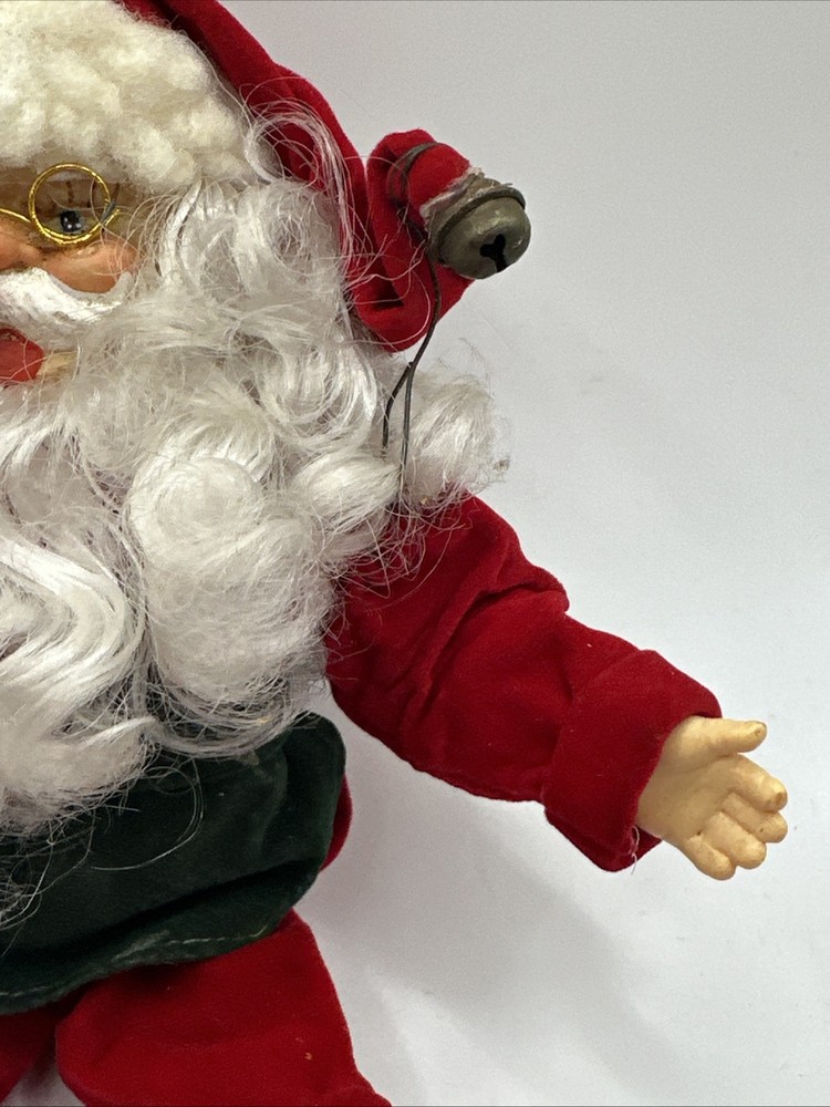 This vintage Santa shelf sitter is a charming addition to any Christmas collection. With its all-over multicolor pattern and asymmetrical shape, it is sure to stand out on your mantle or shelf. The figurine is made of a combination of plastic, velvet, and fabric, giving it a plush finish. The Santa figurine is a medium size and is perfect for adults. It features a posable design and depicts Santa in mid-centry modernism style. This collectible ornament was made in the United States and is a unique find for those who love elves and fairies themed decorations. Add this vintage Santa shelf sitter to your collection today and bring some festive cheer to your home.