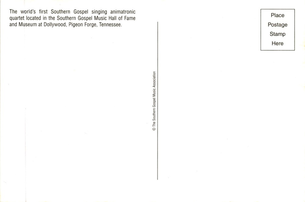 MAKE AN OFFER. THE MORE YOU BUY THE BETTER DEAL I WILL ACCEPT The postcard highlights the world's first Southern Gospel singing animatronic quartet located at the Southern Gospel Music Hall of Fame and Museum in Dollywood, Pigeon Forge, Tennessee. Dollywood is a popular theme park owned by entertainer Dolly Parton, located in the Smoky Mountains.