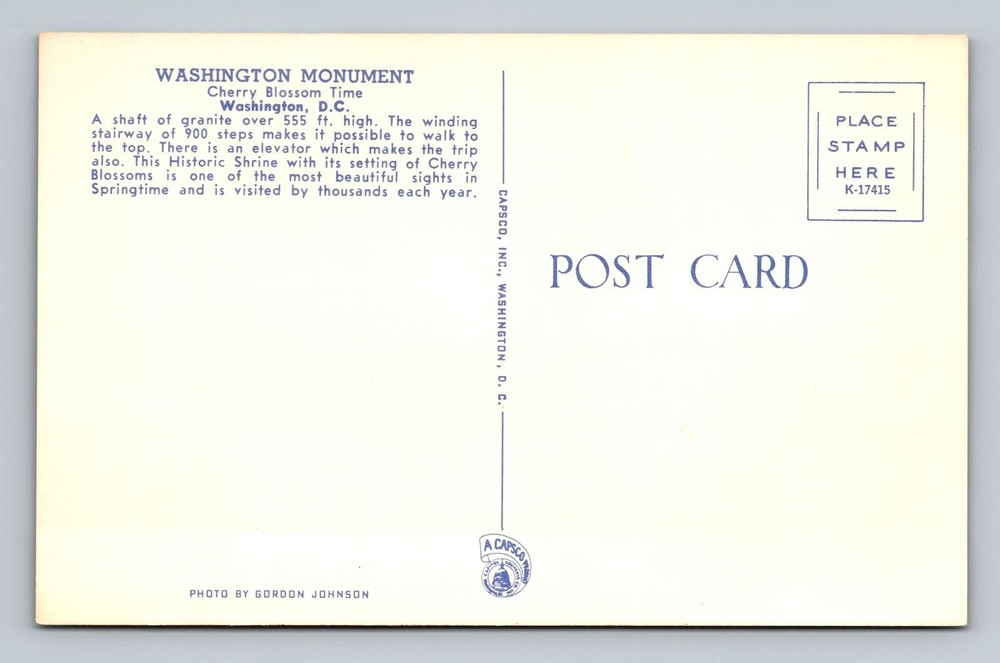 Vintage Postcard of Cherry Blossoms at Washington Monument DC Souvenir PC