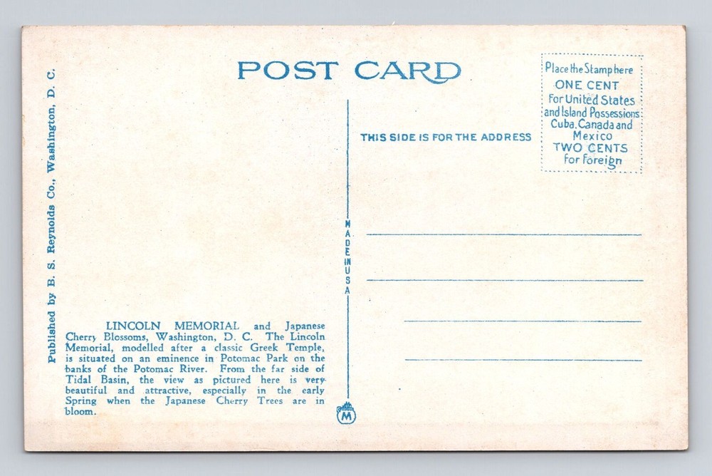 Vintage Postcard of Lincoln Memorial & Cherry Blossoms in Washington DC