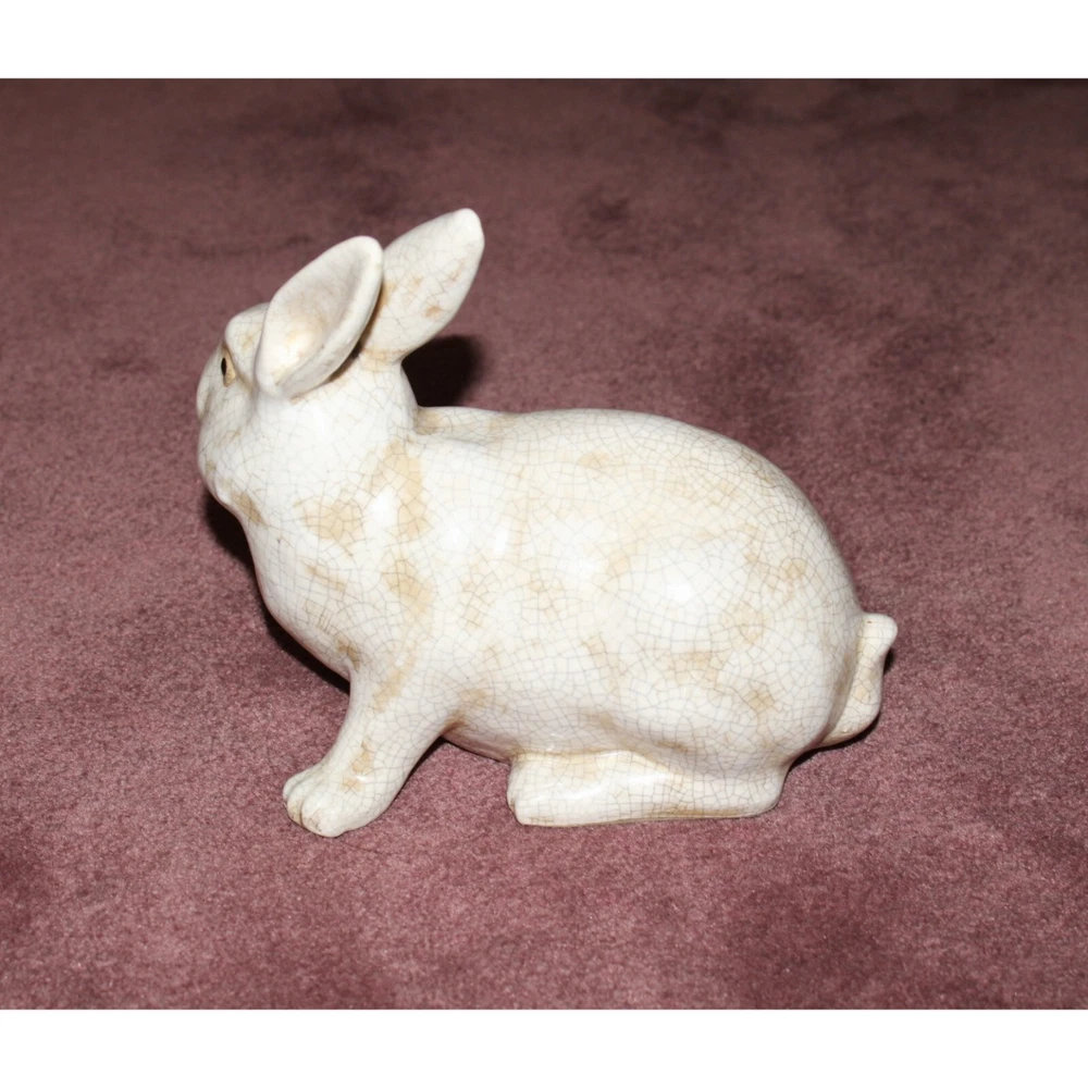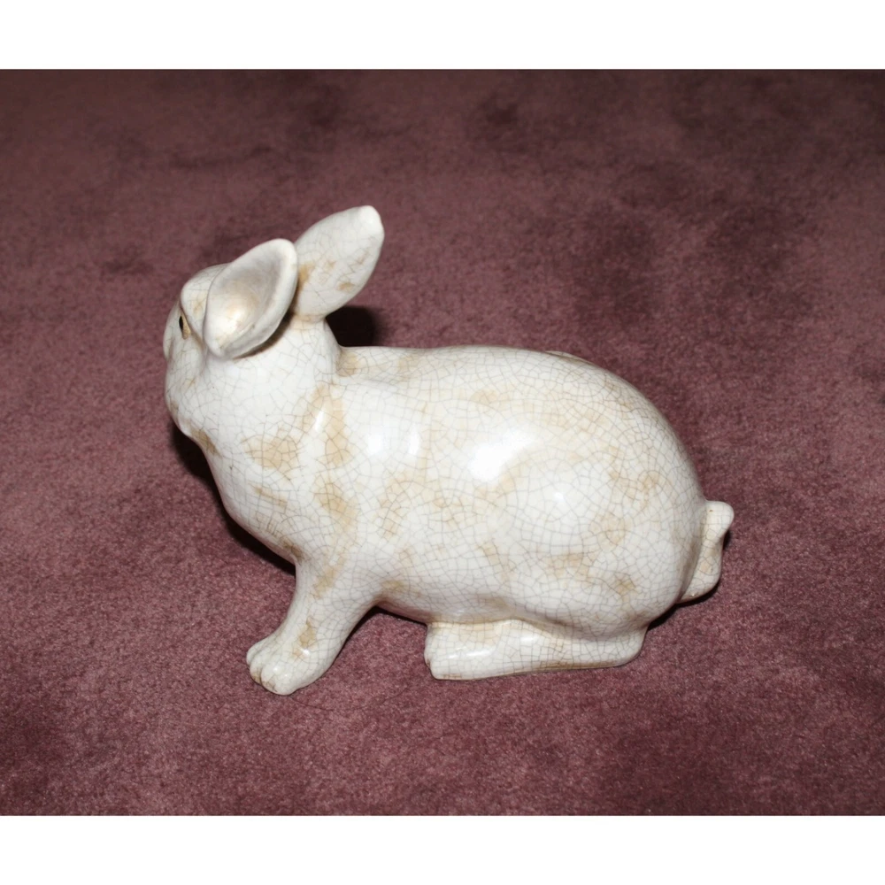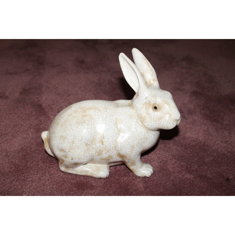 Excellent condition, no scratch or cracks. Vintage Pottery Bunny Rabbit White Crackle Glaze French Ceramic Figurine Signed