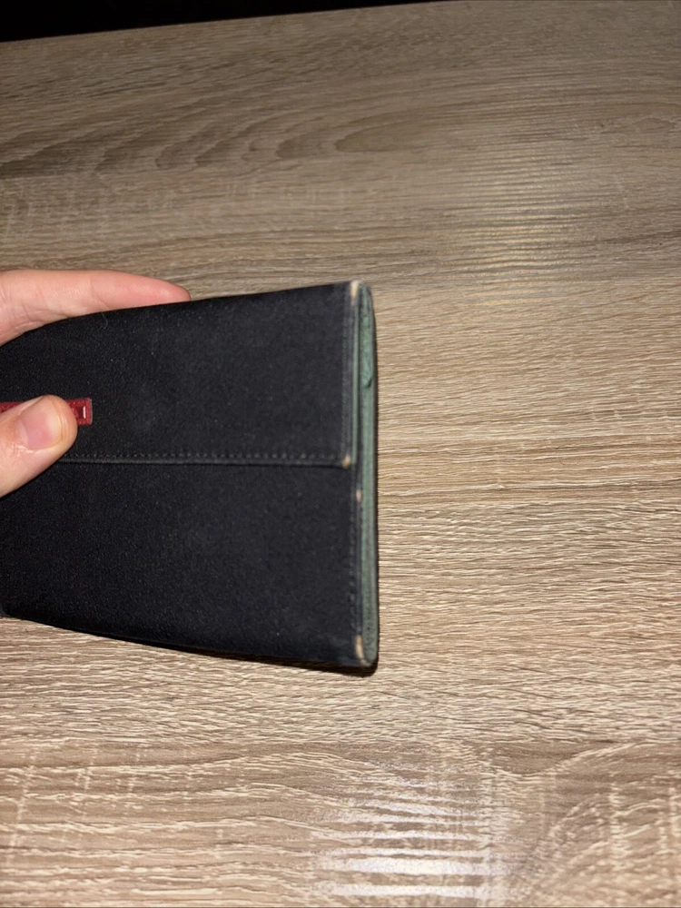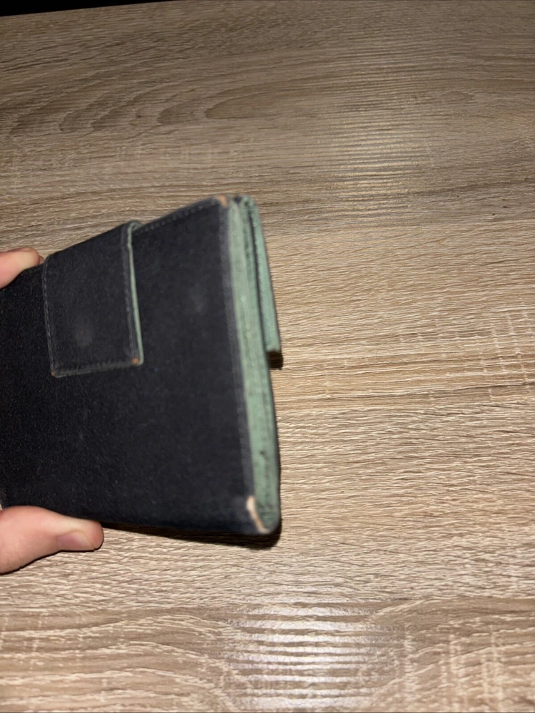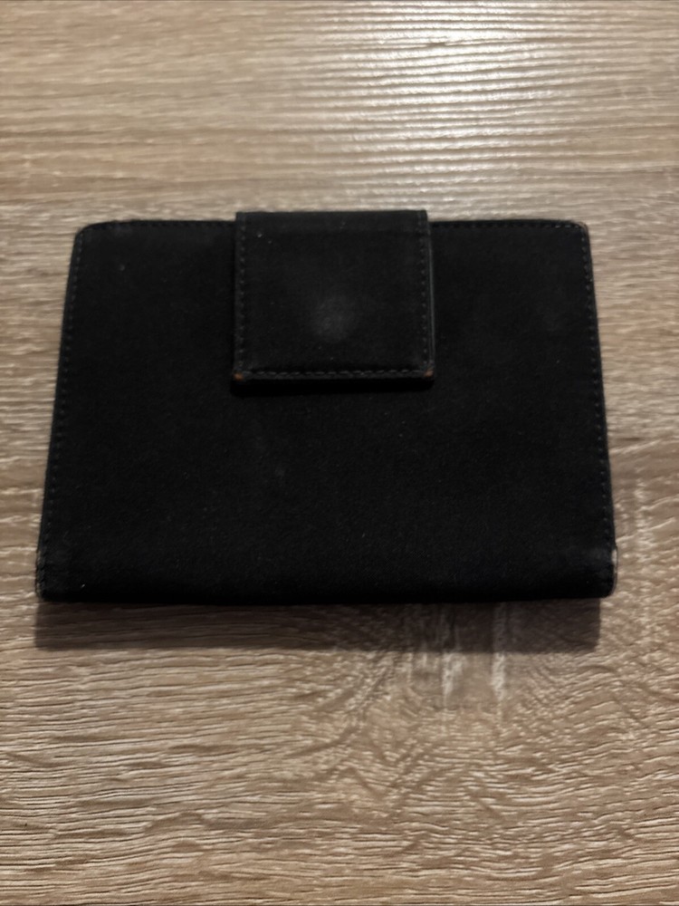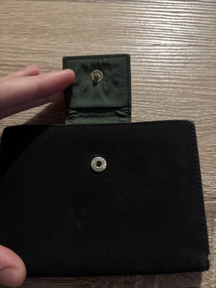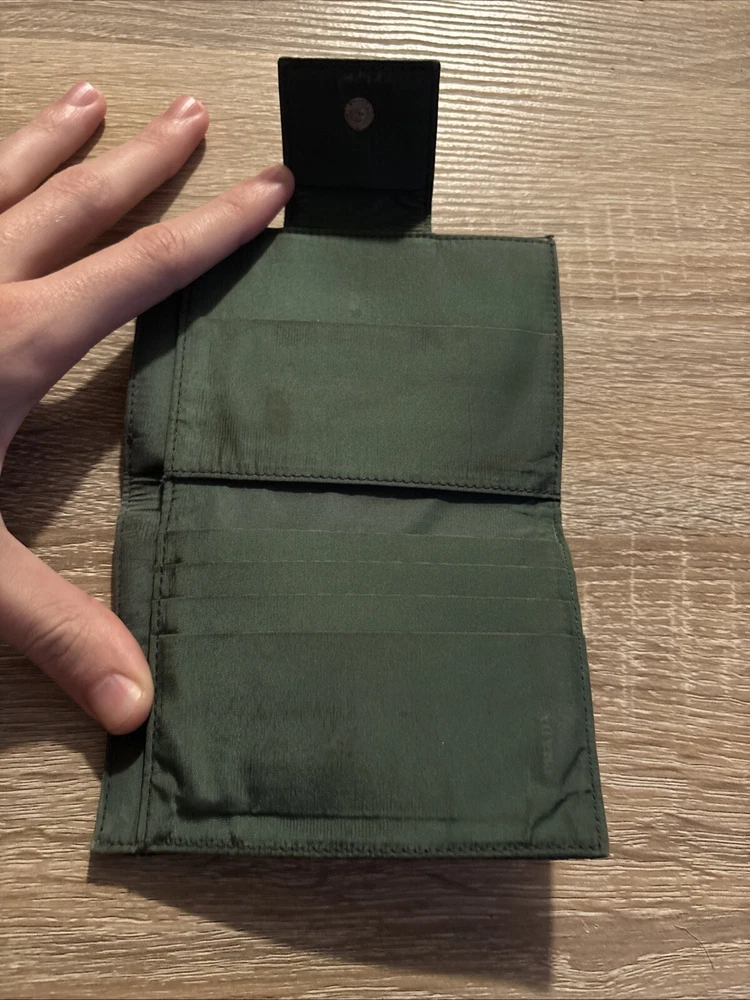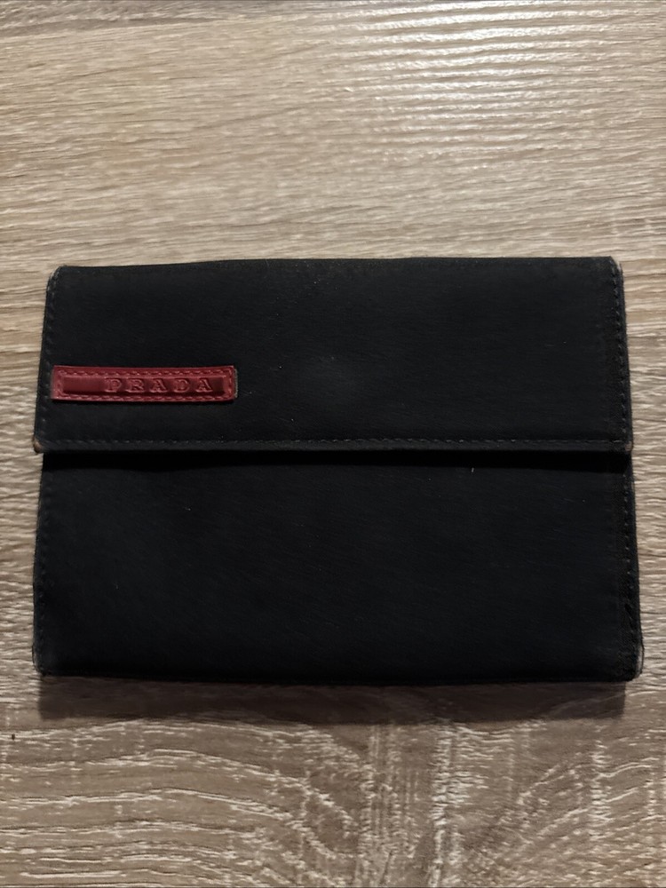 Used Prada wallet, not sure what the exact name of it is, I believe this is from the late 70s early 80 Edges are worn, inside is clean, button on the front is pristine, button on the back still works but not in amazing condition. Great price to add to your collection and for a great price!!