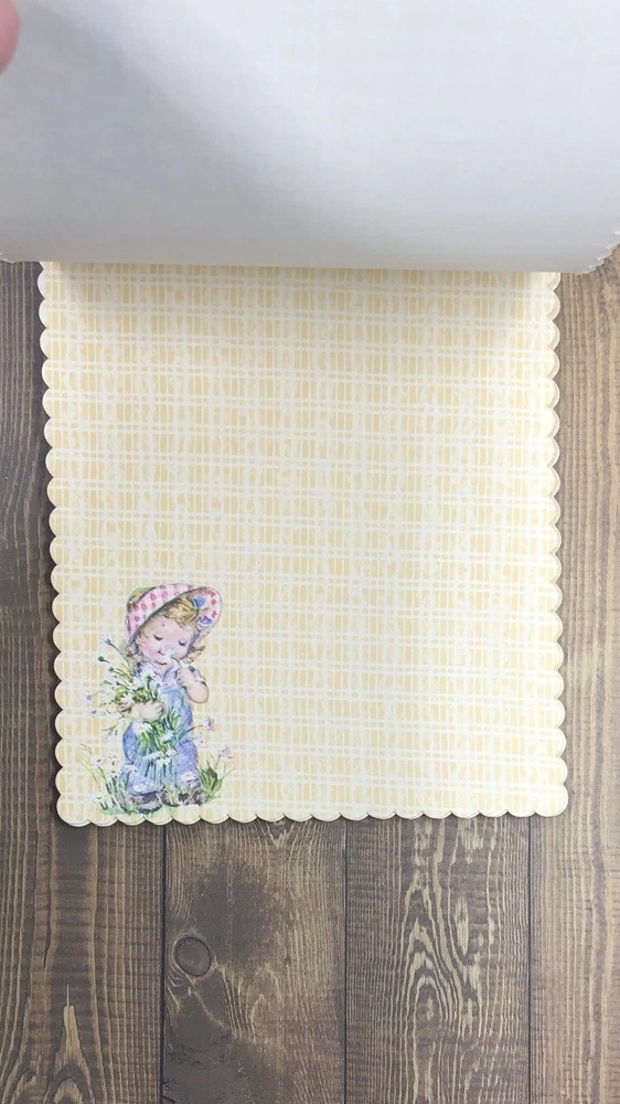 Vintage Pratt & Austin “Rusties” Scalloped Notepad Paper. Incomplete 24 Sheets. 6 girl holding flowers 0 boy holding flowers 9 red dress 9 boy sitting down Very good condition, *****except pages have come away from the binding.