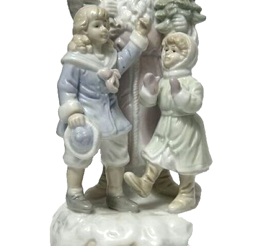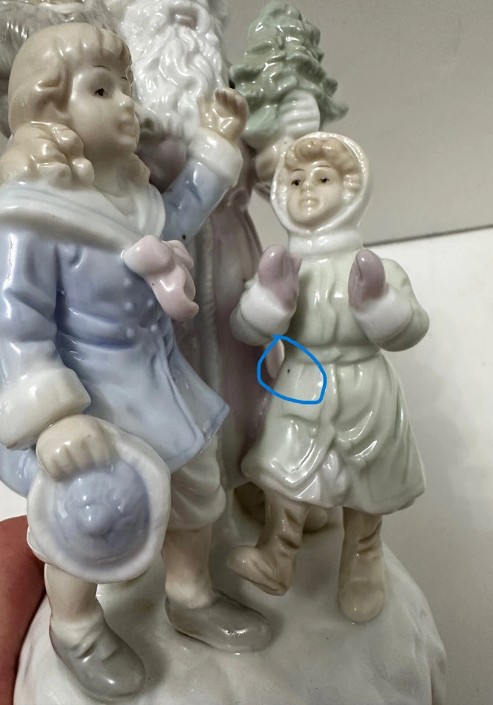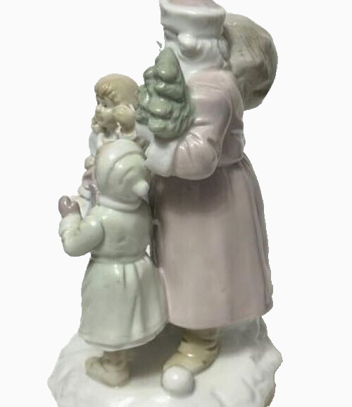 Porcelain Santa Claus w/ Children Christmas Holiday Figurine. Working wind-up music box that plays "Santa Claus is Coming to Town". Pre-owned in really good condition. There are some small dark spots which are in the paint. See pictures for these areas.