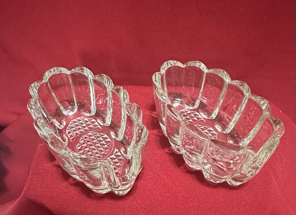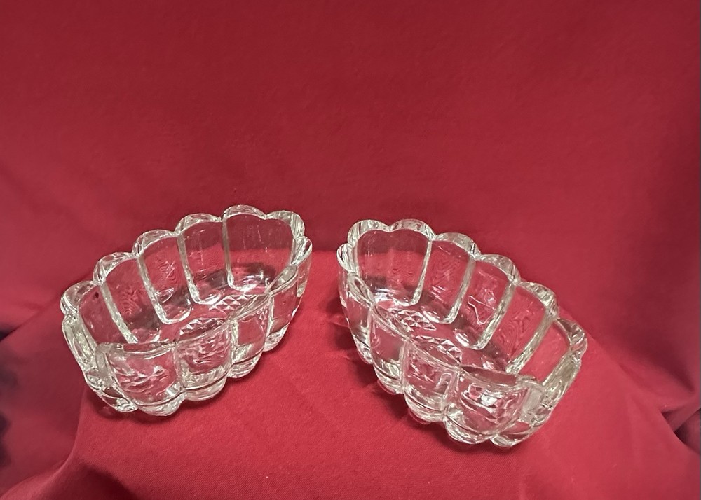 This set of vintage Princess House crystal spoon and fork buffet silverware holders includes two contemporary-style units. The holders are crafted in a sleek design, suitable for modern table settings. While not handmade, they boast a touch of elegance and functionality for serving utensils during meals or special occasions. Perfect for those who appreciate fine dining accessories with a classic yet trendy appeal.