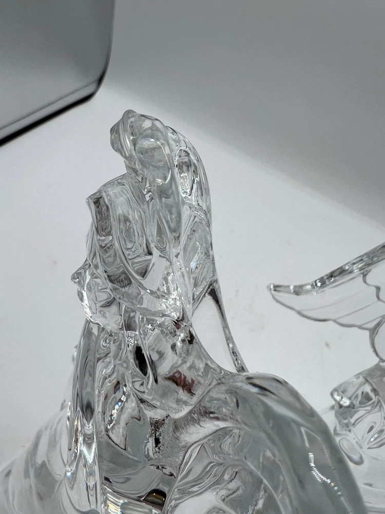 The Vintage Princess House Lead Crystal Angel Candlestick is a beautifully crafted decorative piece from the late 20th century. Made in the United States, this clear crystal candle holder features an Angel design, perfect for adding a touch of elegance to any room. With its glossy finish and pressed glass production style, this original Princess House piece is a stunning addition to your glass collection. The candlestick is suitable for taper/dinner candles. It is a perfect gift for collectors or those looking to enhance their home decor. Set of 2.