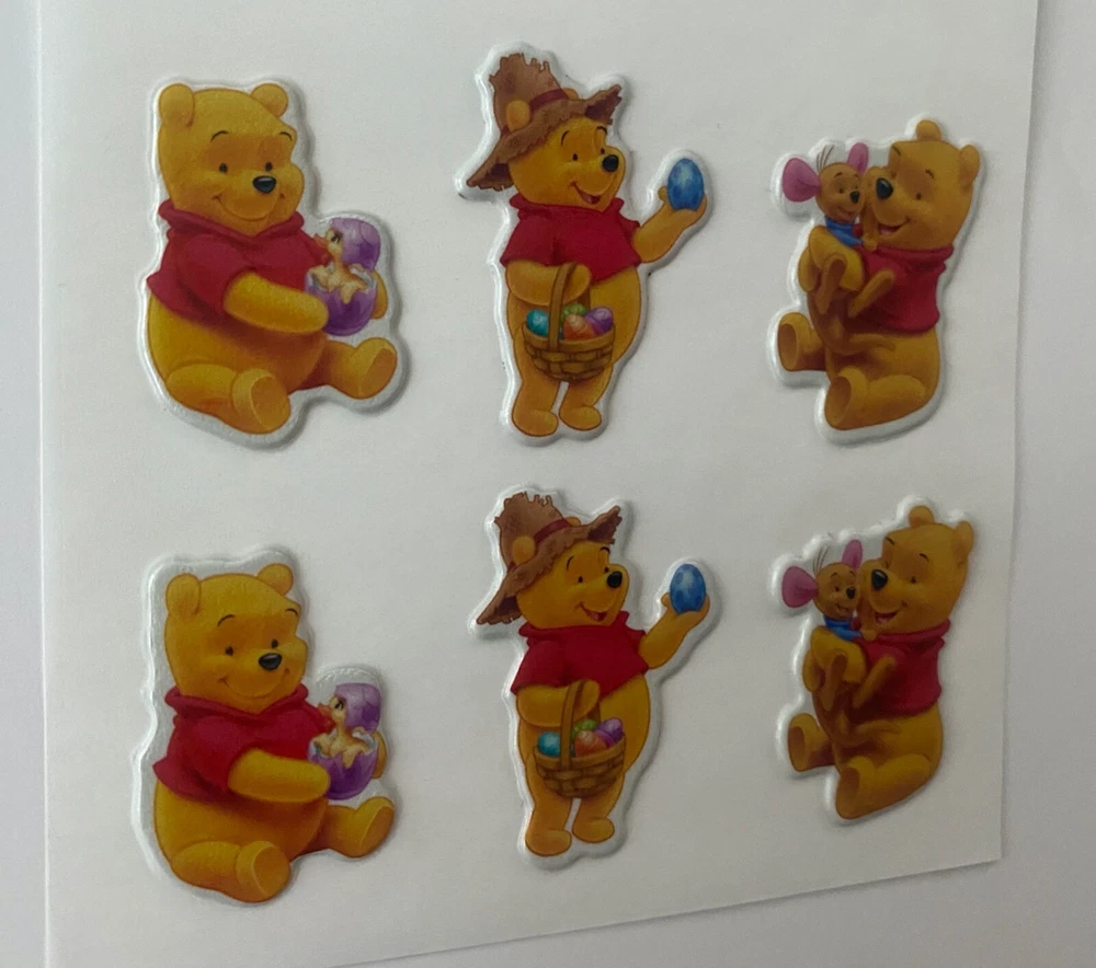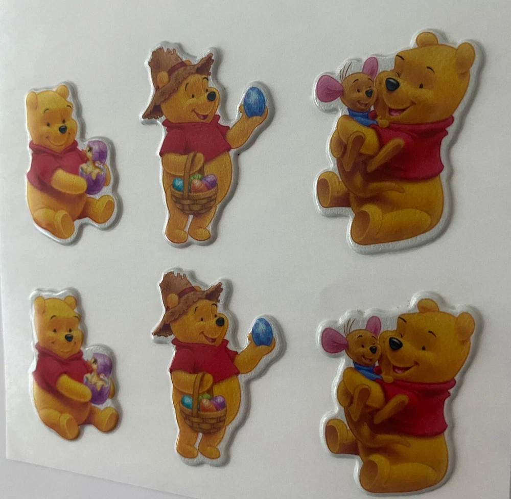 Vintage Set of 6 Count ~ 1990s Puffy Scratch N Sniff Winnie the Pooh & Roo Stickers -Scent is not guaranteed due to age, but I am still able to smell every sticker. :) Each sticker is carefully unstuck and ready for use. VERY RARE Special SET! The stickers I am selling are from my Grandmother & Great Grandmother's personal sticker collection. Most are from over 30/40+ years ago. They have been in photo albums, boxes and plastic bags. These stickers are very Rare & in great condition. COLOR MAY VARY FROM DIFFERENT SCREENS PLEASE ASK ANY QUESTIONS YOU MAY HAVE ABOUT THE COLORING OF THIS ITEM BEFORE COMMITTING TO PURCHASING IT PLEASE. Check out my other collections! Thank you.