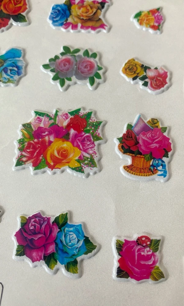 Vintage 1980s Puffy Scratch N Sniff Colorful Mixed Roses Vinyl Stick-Ons With Smell This New Full Sheet is in great condition. -Scent is not guaranteed due to age, but I am still able to smell every sticker. :) The stickers I am selling are from my Grandmother & Great Grandmother's personal sticker collection. Most are from over 30/40+ years ago. They have been in photo albums, boxes and plastic bags. These stickers are very Rare & in great condition. COLOR MAY VARY FROM DIFFERENT SCREENS PLEASE ASK ANY QUESTIONS YOU MAY HAVE ABOUT THE COLORING OF THIS ITEM BEFORE COMMITTING TO PURCHASING IT PLEASE. Check out my other collections! Thank you.