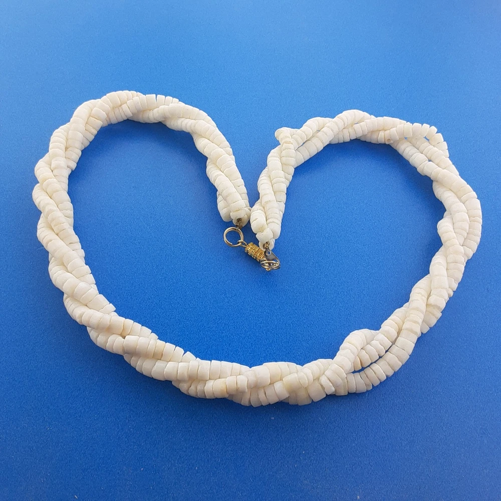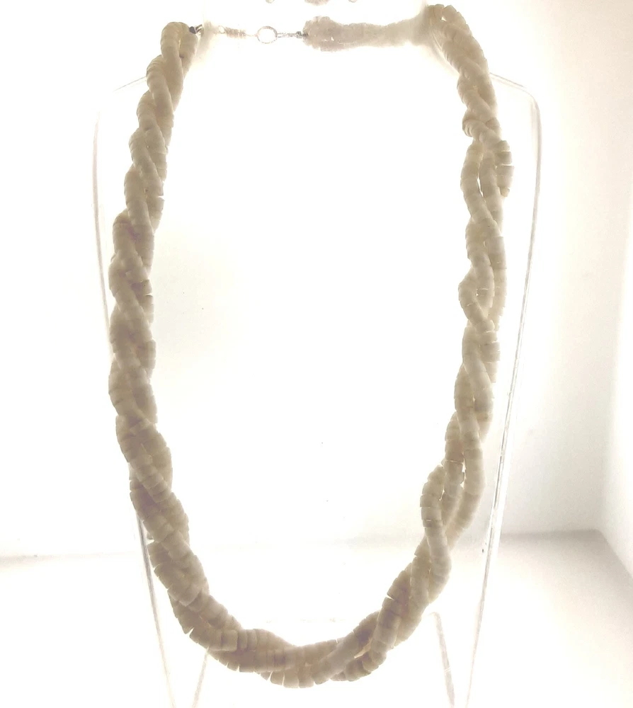 Vintage Puka Shell Hawaiian Necklace Twisted 3 Strand 18 inch