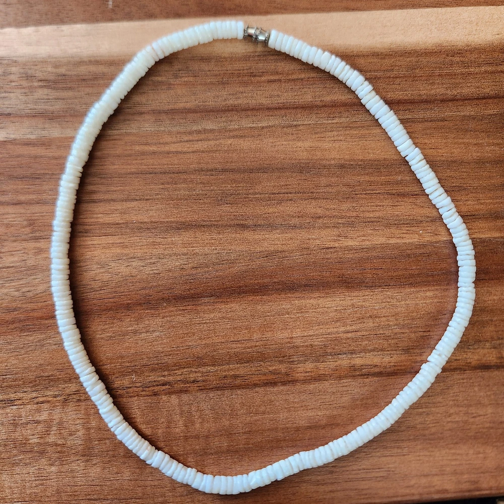Vintage:YesClosure:BarrelOriginal/Reproduction:OriginalDepartment:Unisex AdultsOccasion:Birthday, Mother's Day, Christmas, GraduationAntique:NoCustomized:NoSigned:NoCountry/Region of Manufacture:UnknownBrand:PukaTheme:BeachStyle:BeadedMaterial:ShellCountry of Origin:UnknownNecklace Length:18 inType:NecklaceMain Stone:ShellMain Stone Color:WhiteColor:White