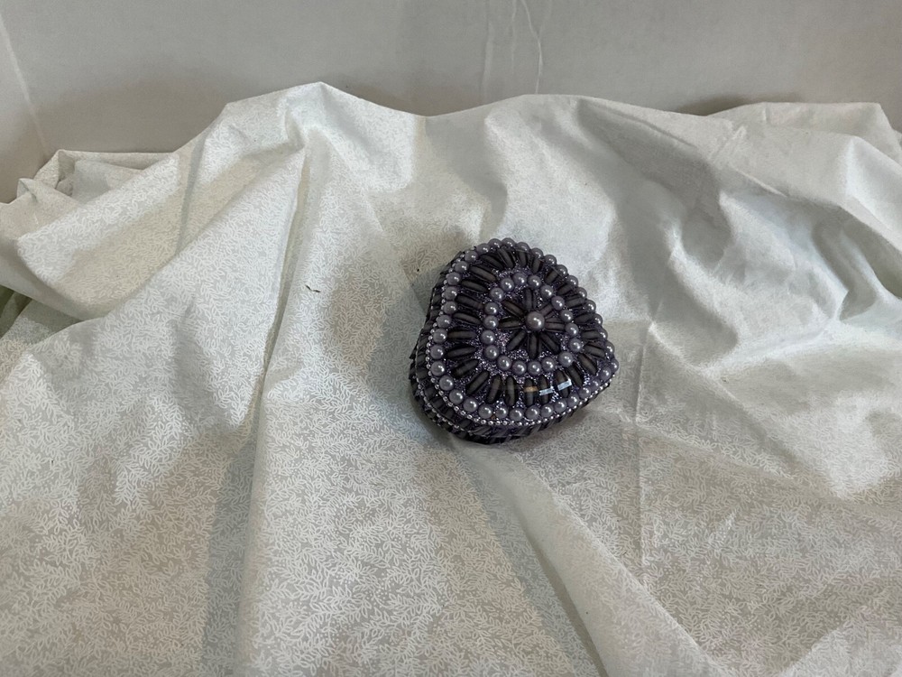 Vintage Purple and Grey Beaded Heart Trinket Box