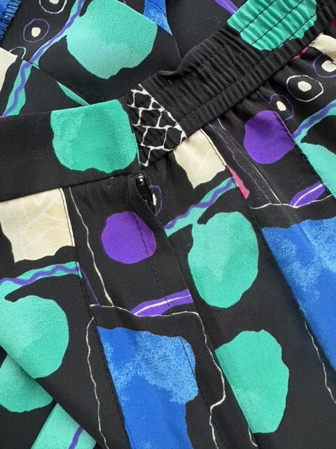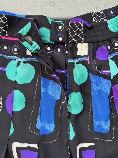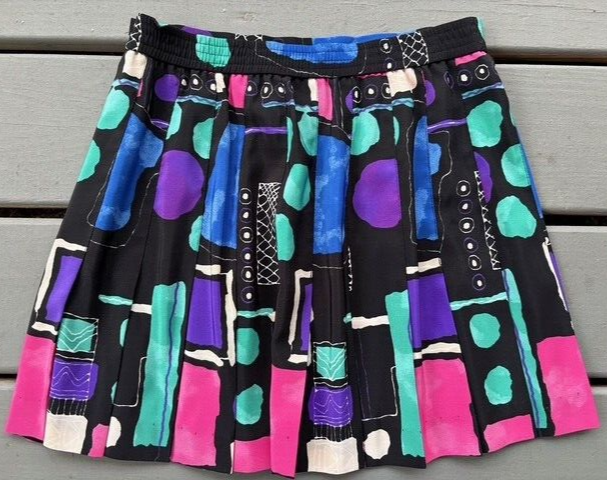 This is a listing for a pre-owned vintage Quantum Sport tennis skirt in a size 8 (modern small). It has a retro geometric print and back zipper and hook and eye closure. Please ask all questions prior to auction end for all sales are final. Thank you & good luck! BRAND: Quantum Sport SIZE: Vintage US size 8. 13" across waist lying flat, 15" in length Fabric: 100% polyester Unlined Made in the USA