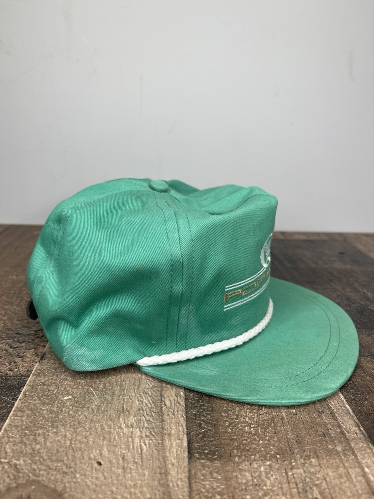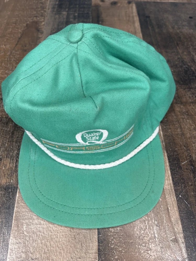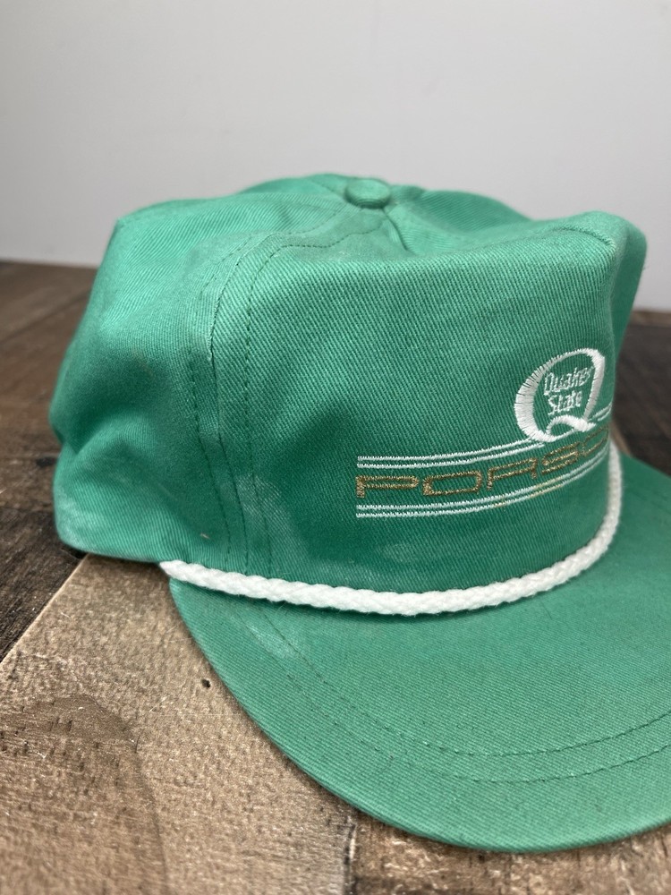 Vintage Quaker State Porsche Green Auto Racing Cap CONDITION IS USED DOES SHOW WEAR NEEDS A GOOD CLEANING SHIPPING USPS GROUND ADVANTAGE