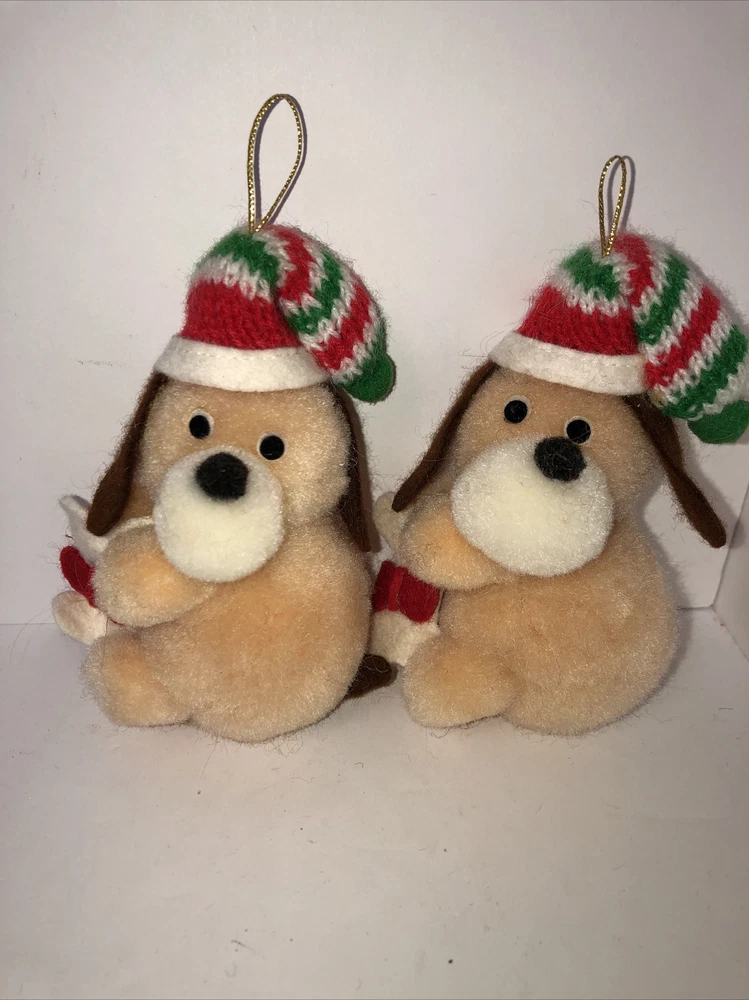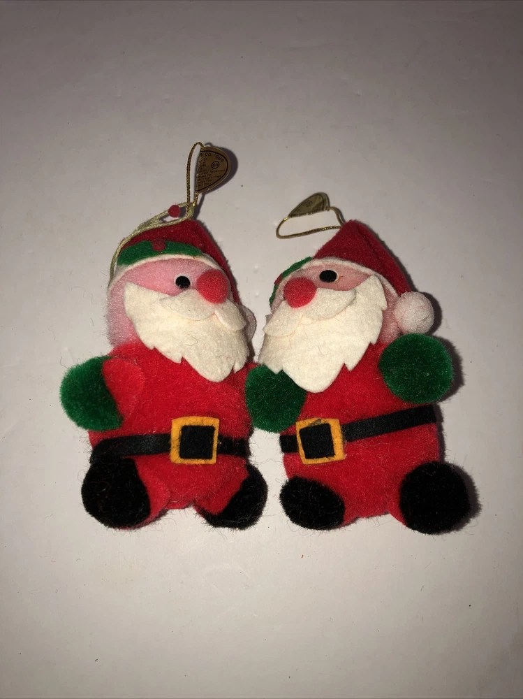 Vintage R Dakin 1984 Plush Christmas Ornaments, Santa, Snowman and Reindeer 8PC