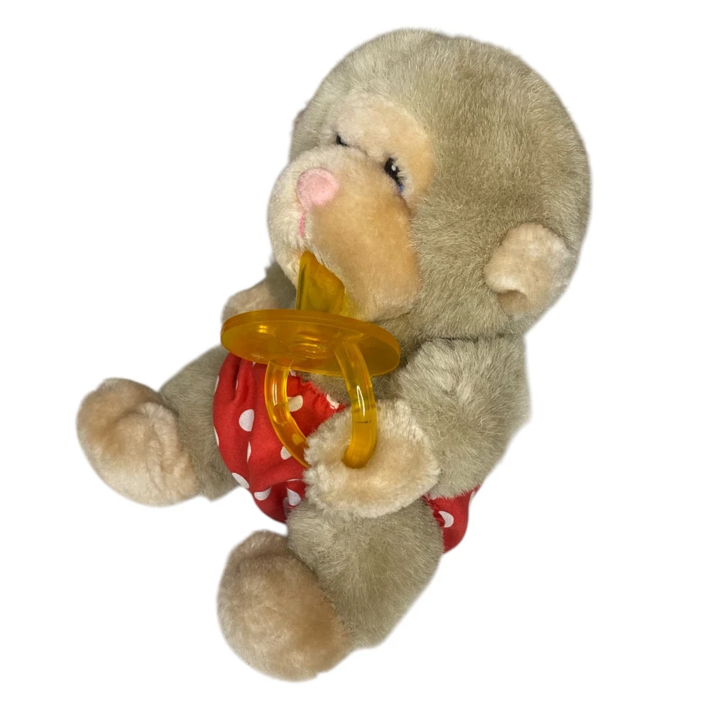 Vintage RARE Russ Berrie & Co. 6.5" Baby Chee Chee Diaper Plush Stuffed Monkey Beautiful rare find! This Russ Berrie & Co. Stuffed Monkey is just precious Tanned with a red and white polka dot diaper He is also holding on to a rubber pacifier that fits in his mouth It's approximately 6.5" tall while sitting down Pre-loved and excellent vintage condition Color in pics may vary due to lighting and/or monitor settings SHOP POLICIES * All items ship within 1-3 business days (I always try to ship by next business day) * This item is used vintage/pre-loved * Any defects (if any) are noted and shown in the photos * All sales are final * Please review the description/pictures and ask questions before purchasing