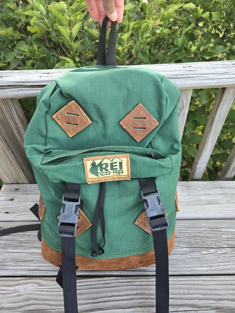 80's Vintage REI Co-op Backpack. - Green with leather accents. Preowned in good condition with some exterior wear. The interior has some visible wear die to age as shown in the photos (see photos). PLEASE NOTE π Please take your time to review the photos closely as they are part of the item's description. We always try to present colors as accurately as we can, but keep in mind that colors may show up differently on different devices. We do our best to take all photos in natural light during the day, so as to ensure that any noticeable flaws are visible in the best lighting. π We include written measurements in our descriptions where applicable and also show the measurements in the photos. π We pack everything as carefully as we can and all orders come from a clean, pet-free, smoke-free space. π All of our items are sold as is. We do not accept returns. If you have any questions or need to see another photo or two, feel free to reach out; we are more than happy to help! Warmly, Tamy (Narrow Path Expo)