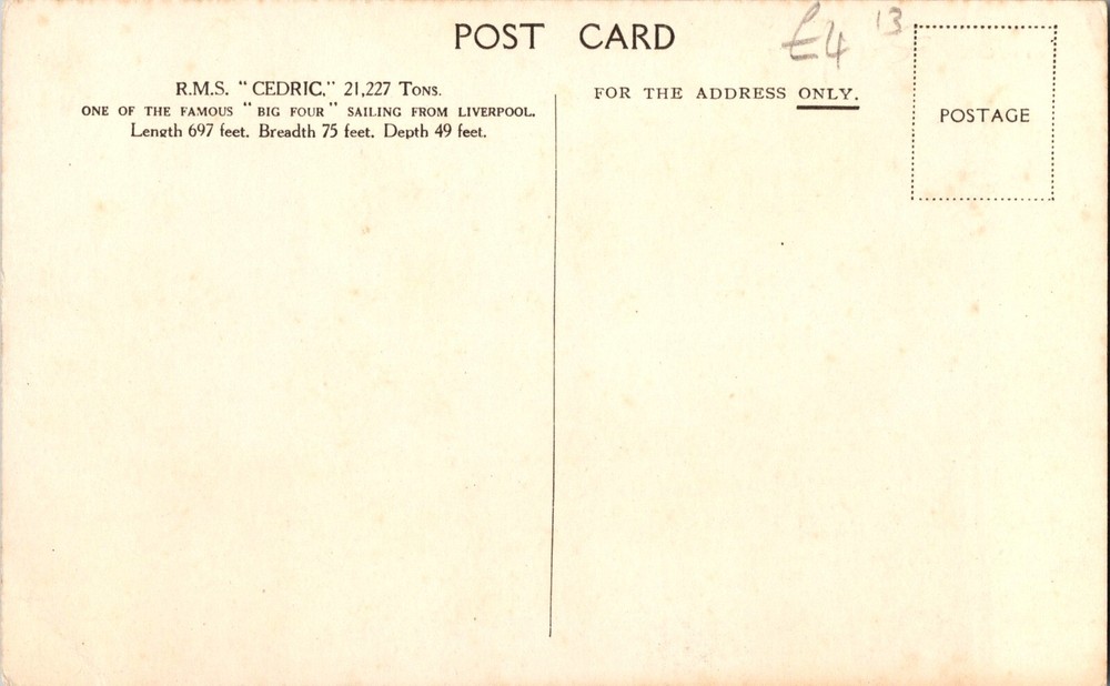 Up for auction is a beautiful Color picture postcard ship cover from England . Beautiful stamps and cancels. Never Postmarked . In good condition . Priced to sell. Mint England Ship Picture Postcard Twin Screw RMS Cedric white star Line One of the big four sailing from Liverpool.