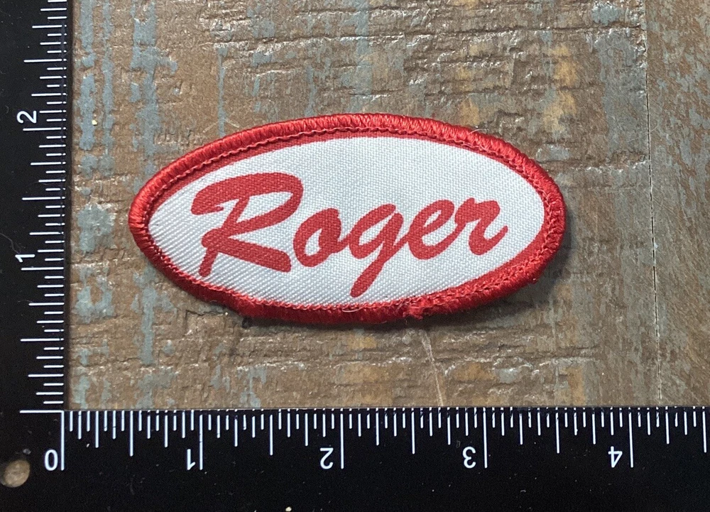 Vintage ROGER Name Tag Work Shirt Job Uniform Printed Iron-On Patch Red