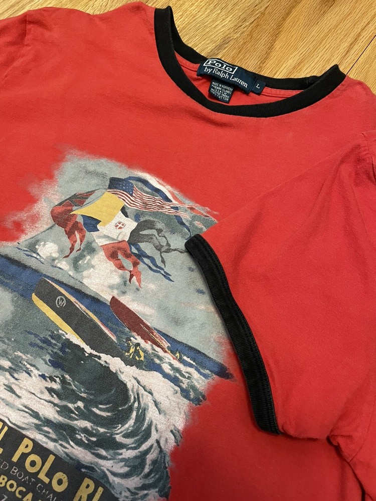 VINTAGE RALPH LAUREN POLO RINGER T-SHIRT - RARE INTERNATIONAL SPEED BOAT CHALLENGE GOOD USED CONDITION AS SHOWN IN PICTURES - SOLD AS IS PLEASE EMAIL ME IF YOU NEED ANY FURTHER INFORMATION - THANKS FOR LOOKING SHIPPING TO YOUR LOCATION WILL BE CHARGED