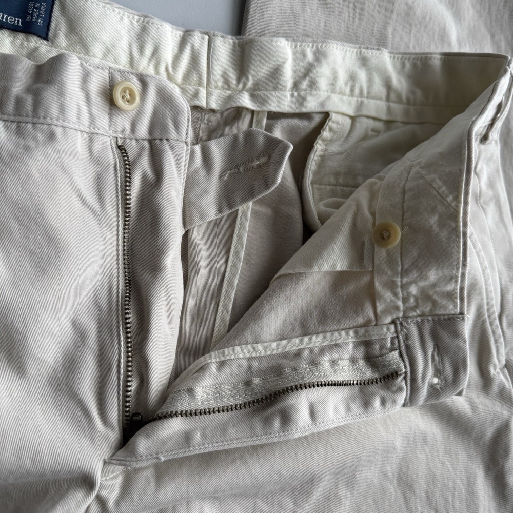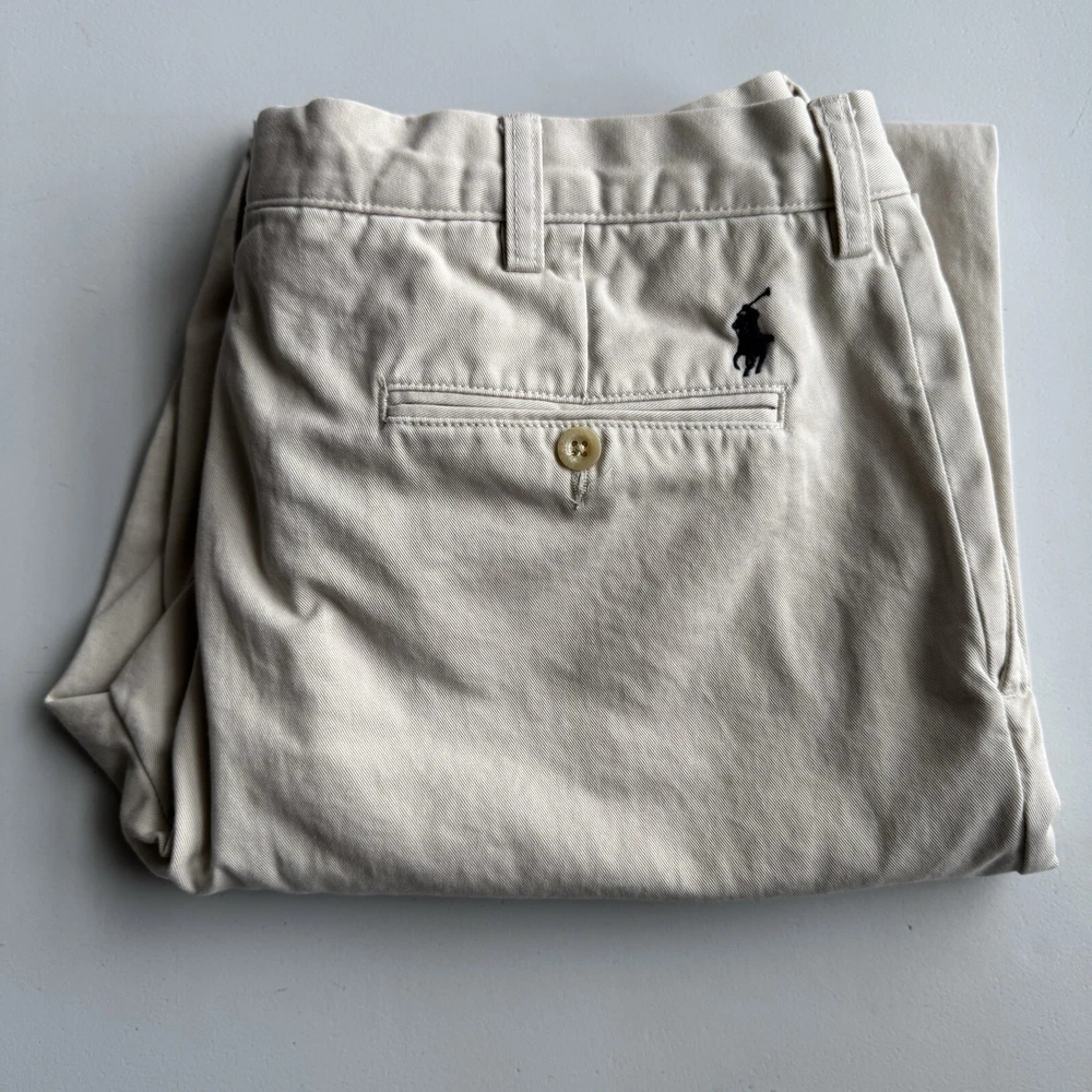 Elevate your wardrobe with these classic Vintage Polo Ralph Lauren Preston Pants. Made from high-quality cotton twill, these pants feature a light khaki beige color with a subtle embroidered back logo, adding a touch of retro preppy style. The pants have a straight leg style with a mid-rise waist and a 31-inch inseam, making them perfect for casual or business occasions. The pants come with pockets and a zip and button closure, ensuring comfort and convenience. They are machine washable and easy to care for, making them a practical addition to your wardrobe. The polo ralph lauren preston pants are a great choice for men who want to add a touch of classic style to their wardrobe without compromising on comfort and quality.