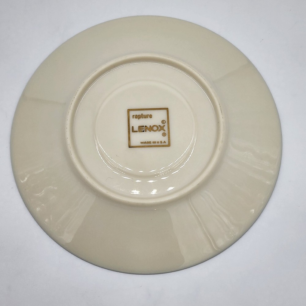 Vintage Rapture by Lenox 6" Saucer Brand : Lenox Pattern: Rapture Description: Innovation, Platinum Ring, Platinum Trim Discontinued Pattern Manufactured between 1972 - 1980 Condition details : No flaws found Country of Manufacture: USA MEASUREMENTS are APPROXIMATE TAKEN IN INCHES Width: 6" °°° Feel free to message us with any questions