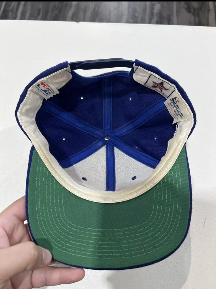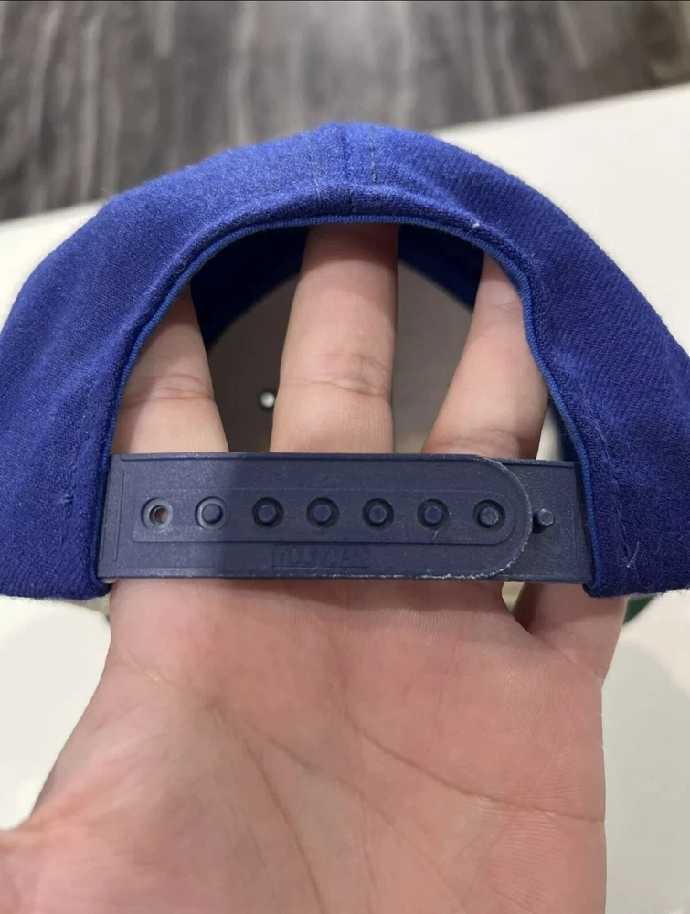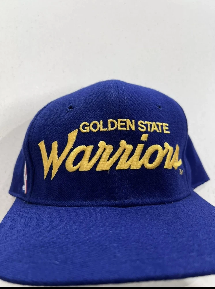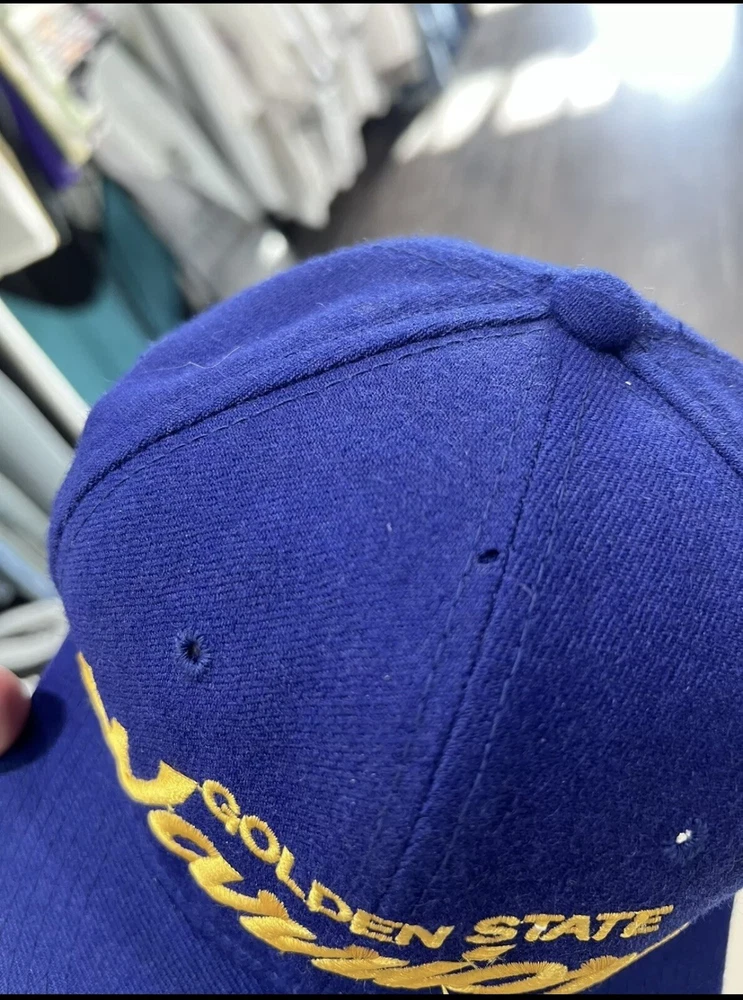Show your love for the Golden State Warriors with this vintage, officially licensed Sports Specialties snapback hat. Featuring the team's iconic script logo and a multi-color design, this cap is a must-have for any Stephen Curry or basketball fan. Made in Korea, this unisex adult hat is perfect for regular season games or everyday wear. Represent your favorite team in style with this unique product, perfect for any sports memorabilia collector. This cap is a great addition to your collection and is sure to turn heads. Don't miss out on the opportunity to own this rare 90s Golden State Warriors snapback hat. 2 small moth holes pictured super rare hat other then that super clean