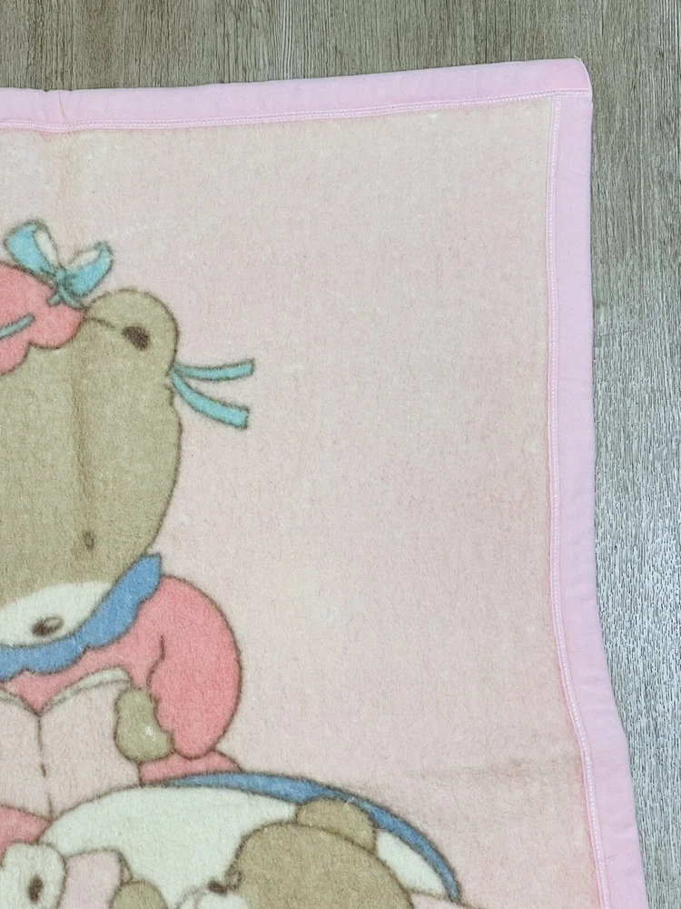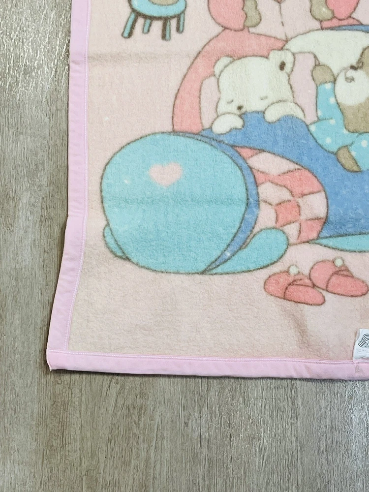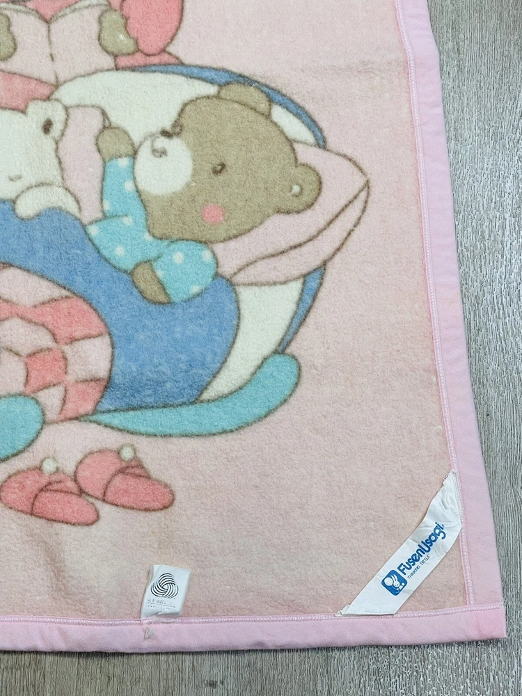 Vintage Rare Fusen Usagi Wool Baby blanket Bears Bed Time Stories 31'' x 41'' The blanket is in good gently used condition with no tears or holes. It does have some spots present .