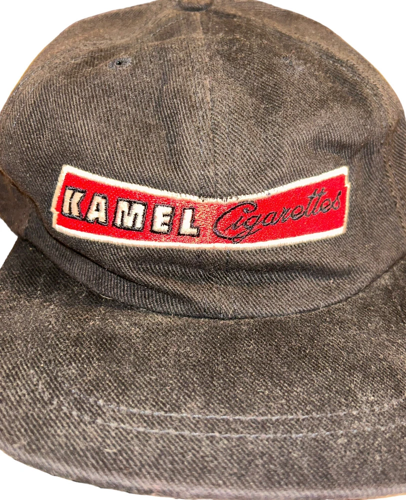 Vintage Rare “Kamel” Camel Brand Cigarettes Strap Back Hat 1998 With Camel Logo. Camel cigarettes was “kamel” up until 1936, in 1996-1998 they brought back the old logo. I have yet to find any hats or clothing with the “kamel” with a k logo. This hat is in pretty decent condition for its age, if you’d like any additional photos please feel free to send me a message!