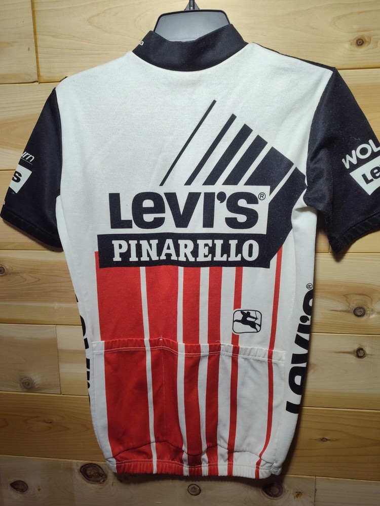 This vintage Levi's Pinarello Blackburn cycling jersey shirt is a rare find for any avid cyclist or collector. Made in Italy, this multicolor jersey features a pinstripe pattern and a V-neckline with short sleeves. The fabric is a medium wash and the jersey is windproof, stretch, and breathable, making it suitable for all seasons and high visibility. The shirt is a size 2 and fits athletic, with a regular size type. The jersey is made of 50% cotton and 50% polyester, and has a classic 80s and 90s sports theme. Whether you're cycling or just want to add a retro piece to your wardrobe, this Levi's Pinarello Blackburn jersey is a must-have.