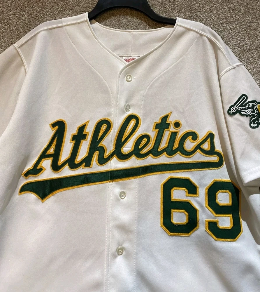 Very good, no holes or stains. Pre-Owned, Ships USPS Ground Advantage. Vintage Rawlings MLB Mens Oakland Athletics #69 Baseball Jersey Size 48 USA