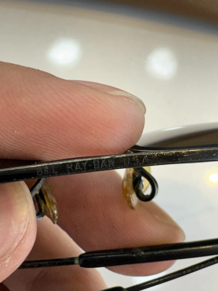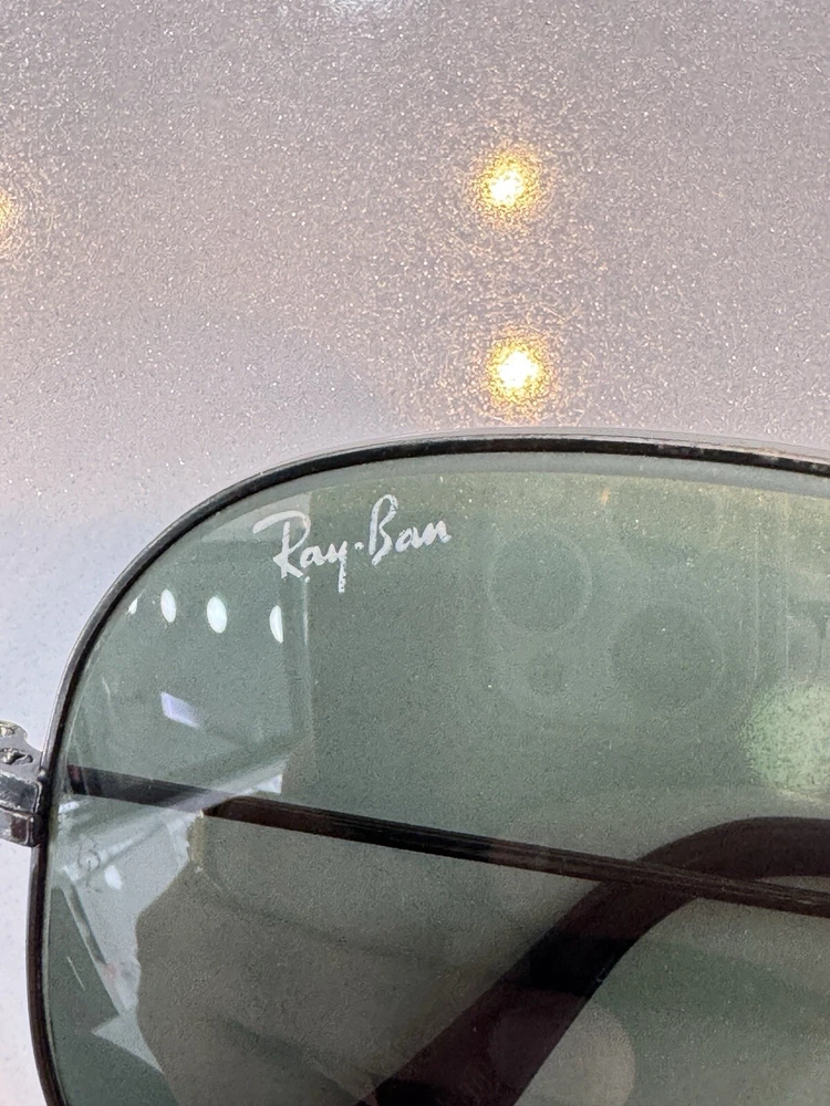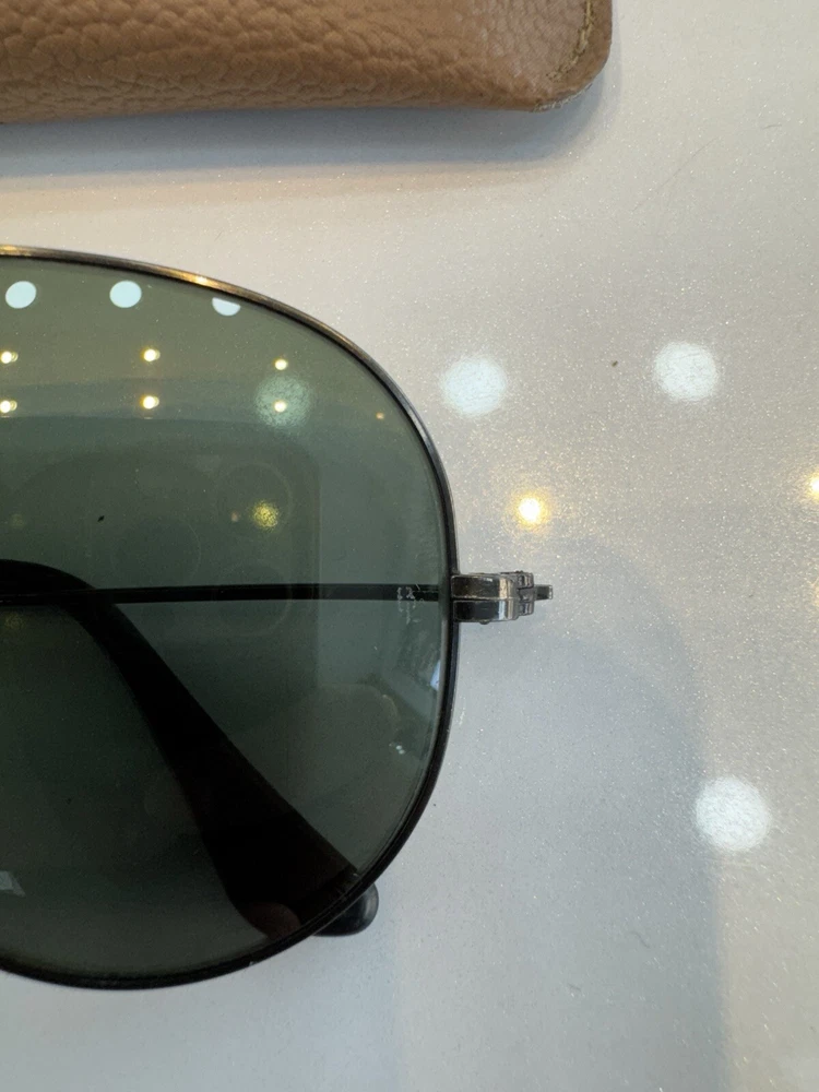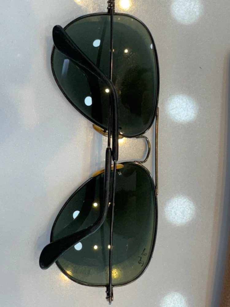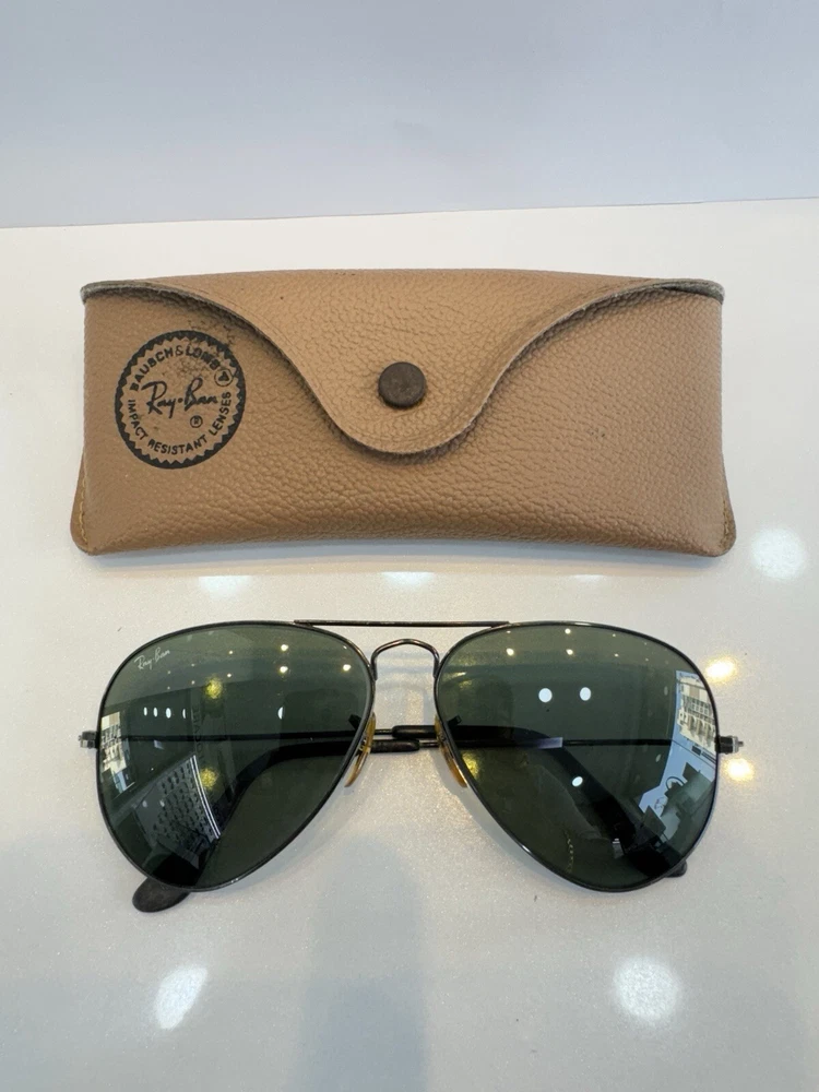 Authentic b&l vintage ray ban sunglasses with case black frame and green lenses G-15 The size on the frame is 58 Frame is marked with B&L USA The nose pads are original bl Glasses are etched with BL Glasses have a few micro scratches on them but overall they don’t hamper the vision. They are ready to use. In case of any doubts feel free to contact me. Returns are accepted so buy with confidence. Do check out my other listings for more vintage sunglasses