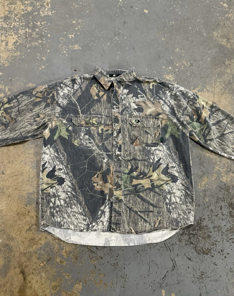 Vintage Real Tree Camo Mossy Oak Apparel Button Up Long Sleeve Shirt-Size XL. Condition is Pre-owned. Shipped with USPS Ground Advantage.