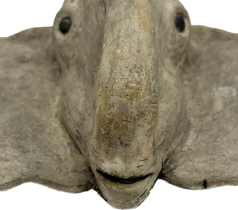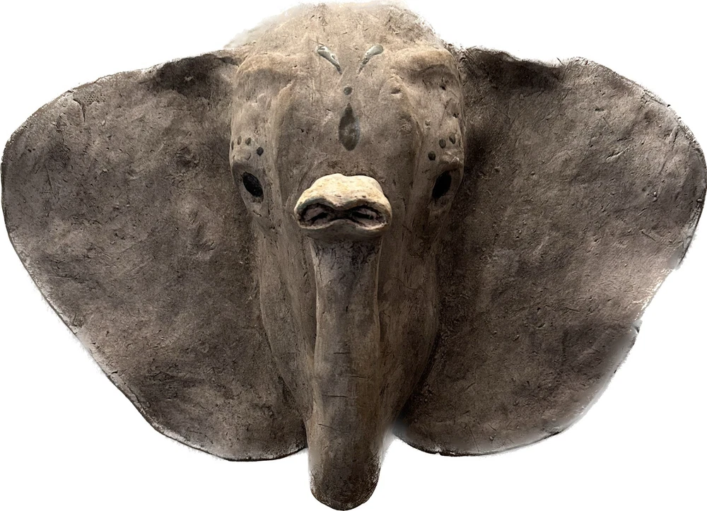Vintage Gray Elephant Head Handcrafted Concrete Wall Hanging Sculpture 10" Tall Vintage realistic gray elephant head wall sculpture. Handcrafted from durable clay or concrete. Impressive 10 inches in height and weighs Apx 6 lbs! Unique and eye-catching design with detailed features such as textured skin and tusks. Adds a touch of exotic, rustic charm to any space. Perfect for animal lovers and collectors. Timeless piece with a distinct vintage appeal. Approximate Measurements Length: 15" Height: 10" Weight: 6 lbs Take a look at the actual photos as they are part of our description.